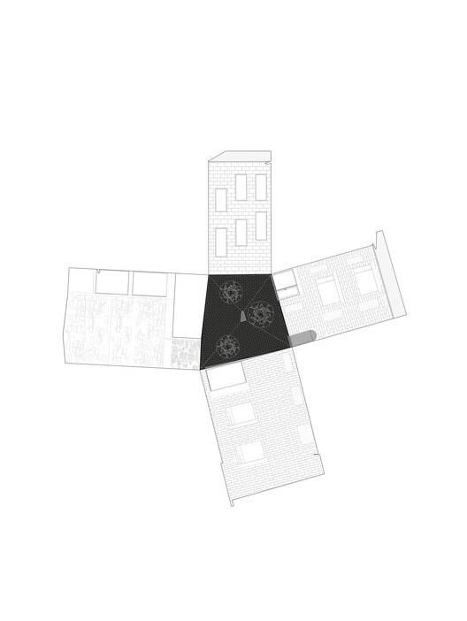 过去改造的痕迹,如 20 世纪的墙壁开口,被保留为空心标记,现在成为叙述建筑动荡历史和演变的垂直表面的一部分。庭院还通过自然通风有助于热调节,营造出令人耳目一新的微气候。新的开口在整体空间构成中彰显其身份,使教室受益于交叉通风。