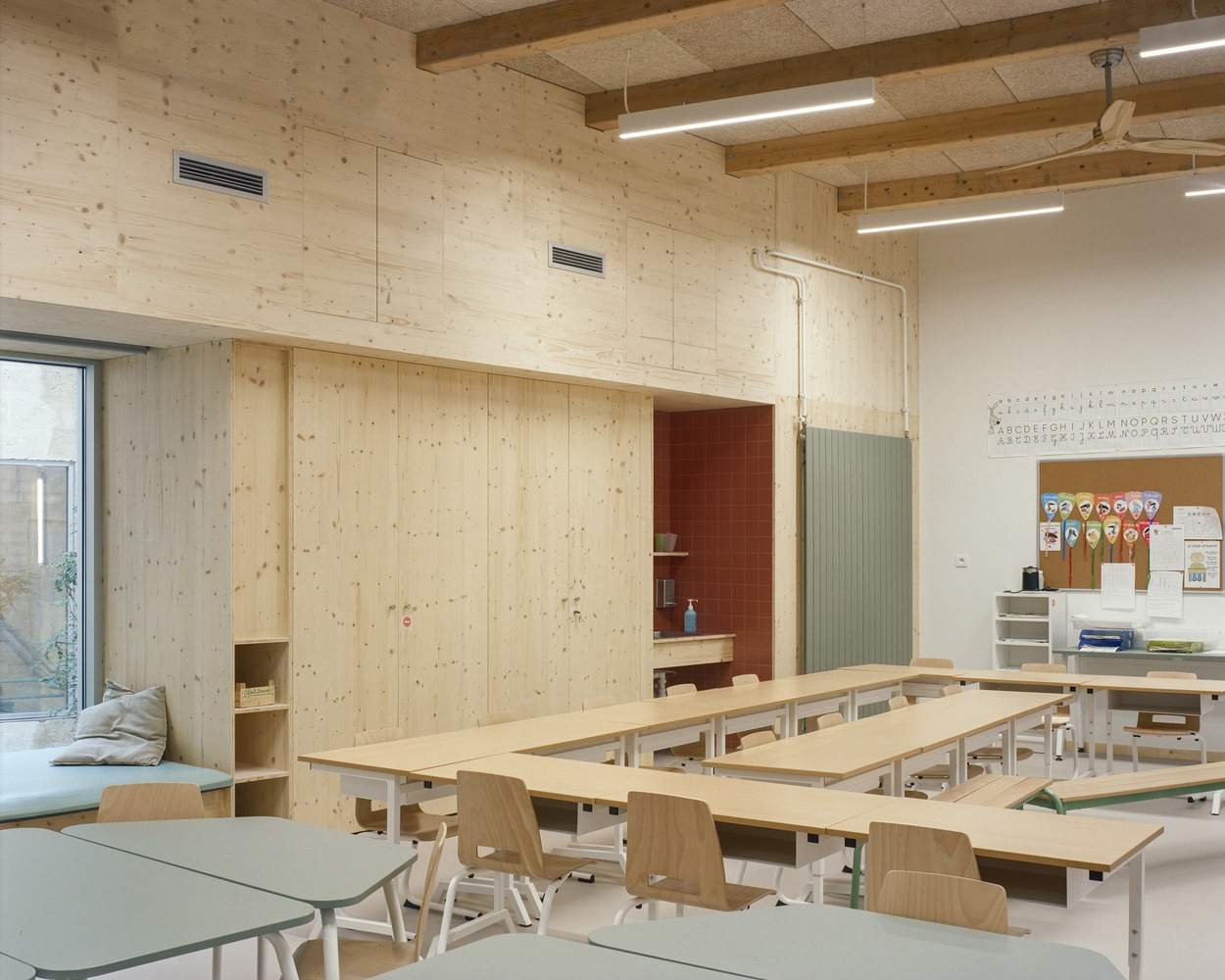 Pierre and Colette Soulage Primary School serves as a bridge between its many past uses, embracing its constantly rewritten historical heritage - exposed, layered, and reinterpreted to play an important new role in the city center of Montpellier. Through thoughtful subtraction, this project brings light, air, and vision back to every corner. Here, architecture has become a teaching tool that enriches visible clues, traces, and mysteries in history through the site, nurturing children's curiosity.