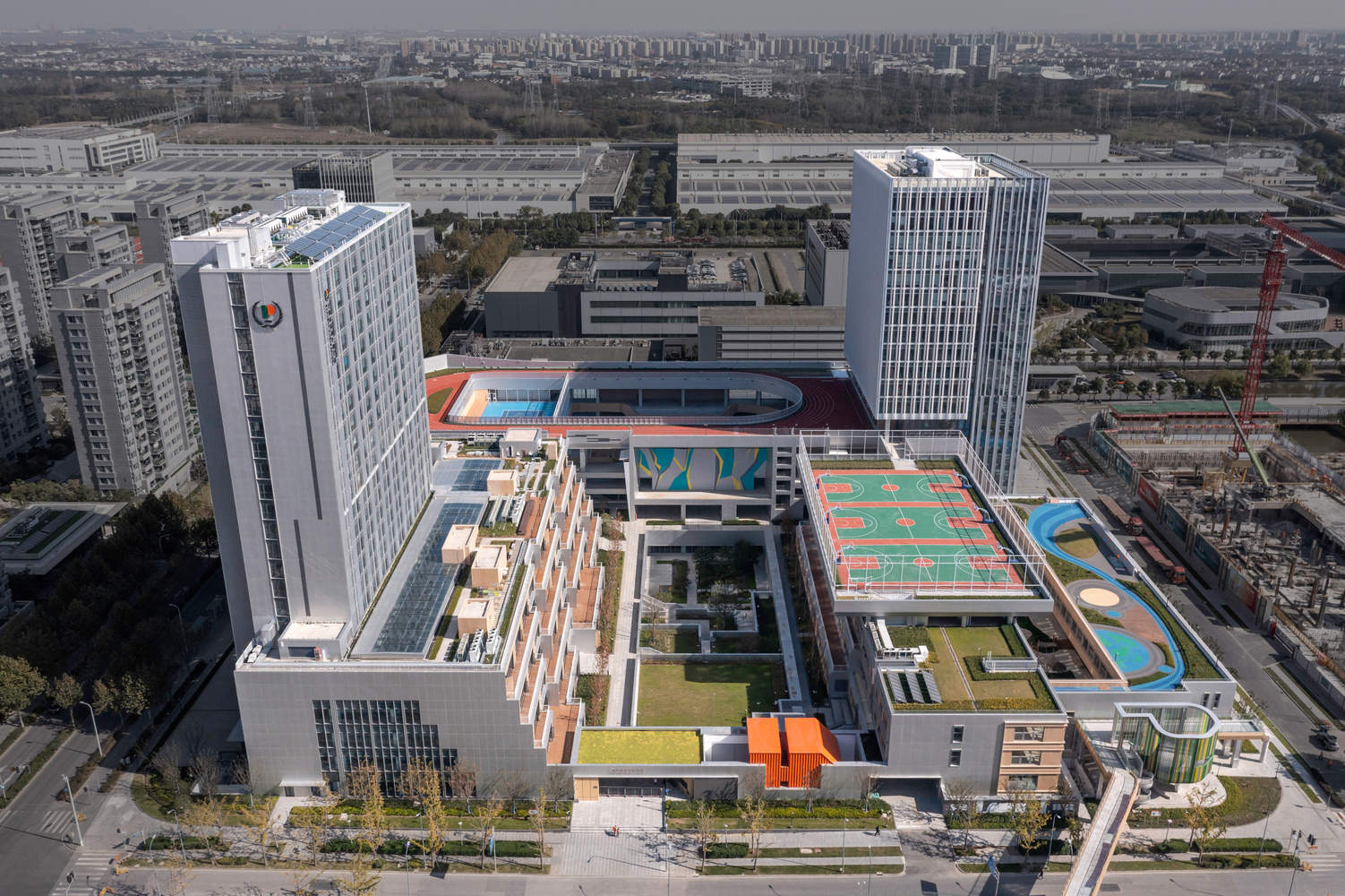 Shanghai Jinding Pinghe School is located in the new CBD of the city, with a high plot ratio requirement of 3.0, an international teaching mode, and a high-density urban environment surrounding it, making it a unique presence. Most campuses operate their own independent kingdoms in the city, but when they abandon their ivory tower identity and transform from observers of the city to participants in the city, even becoming leaders of urban space, their roles become diverse.