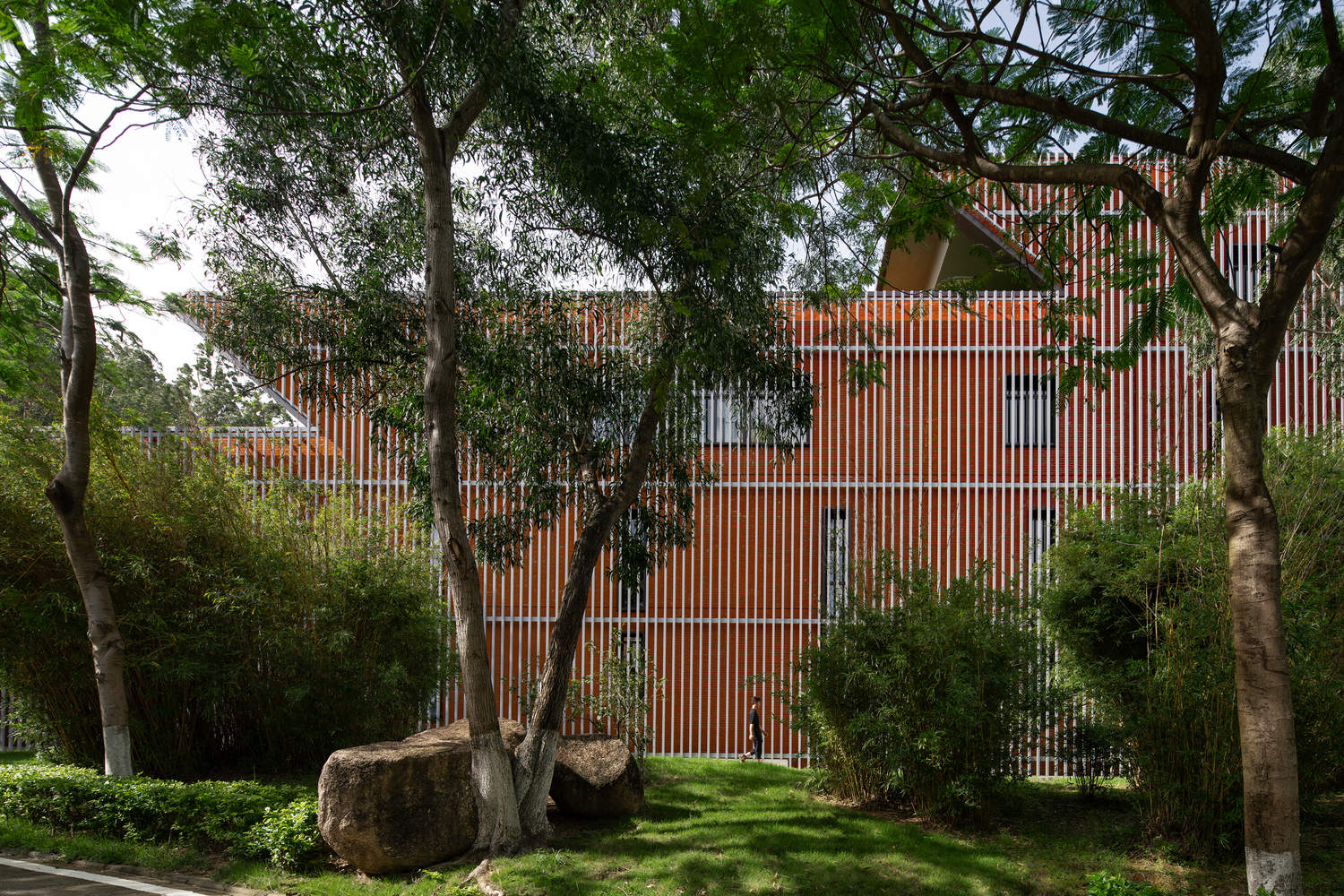 Beijing Normal University Zhuhai Campus is known as the most beautiful valley university in Asia. The campus is located at the northern foot of Fenghuang Mountain, 6 kilometers away from the seaside. Yuanbai Building is an existing building within the campus, located in the core lakeside landscape zone. It consists of 15 independent square "boxes" and has a total of five floors.