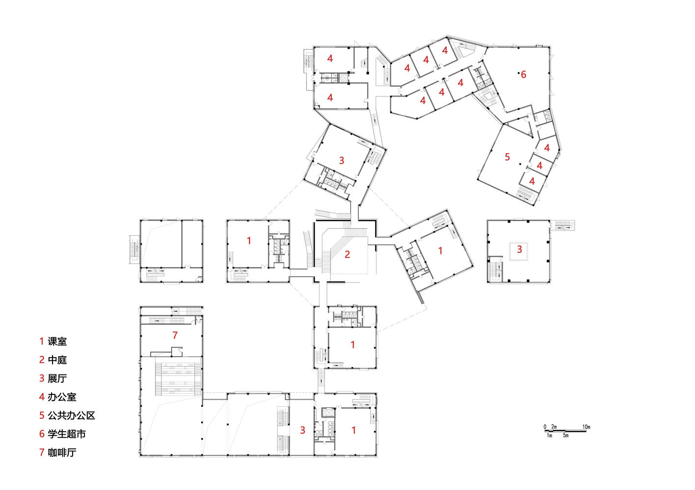 德国哲学家雅斯贝尔斯说过:“教育的本质是一棵树摇动另一棵树,一朵云推动另一朵云,一个灵魂召唤另一个灵魂。” 哈佛大学校长德鲁•福斯特(Drew Faust)认为,大学中人与人的互动所带来的观点碰撞与交流,是构成大学教育不可或缺的要素。如何塑造富有活力的交流场所,营造一种非正式的室外学习空间,将日常点滴融入学生可持续的学习生活中,是我们本次项目思考的重点。我们认为,一座建筑最迷人的部分也并不是建筑本身,而是由建筑触发的无限可能。