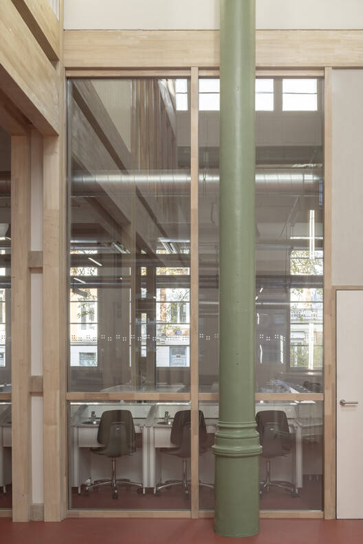 考虑到该地点的历史遗产问题,项目的可逆性是一个关键点。建筑师提出了一种创新和示范性的更新模式,通过一个模块化和可扩展的方案,为未来的变化留出余地。建筑师设计了一种与历史“外壳”分离的室内解决方案,从而使建筑能够恢复到其原始状态。一个可见的主要结构系统(由柱和梁组成的骨架)和次要结构(由可拆卸模块组成的隔断),使得项目具有可扩展性。