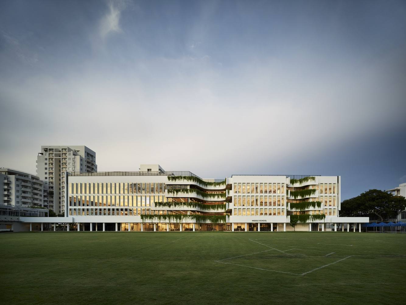 西贡南方国际学校(Saigon South International School)是一所为来自 40 多个国家的 K-12 学生提供大学预科教育的独立学校,秉承着探究精神。本项目包括两座新建筑:一座为中学,另一座为 STEAM 设计中心。