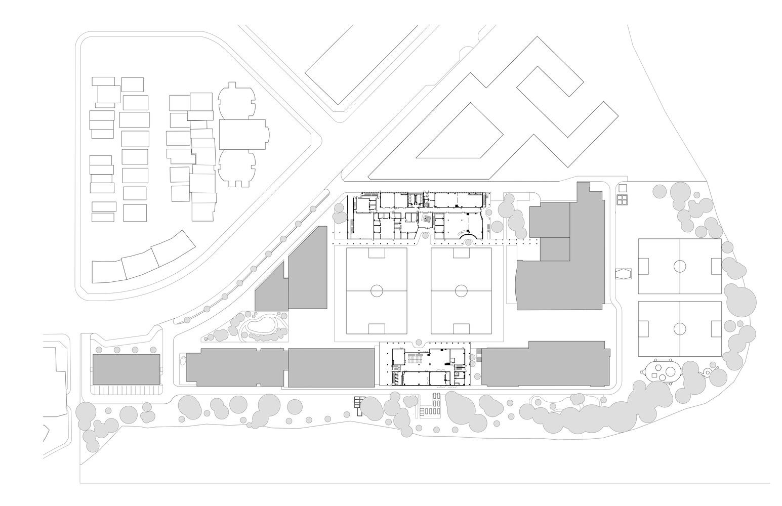 该项目位于由现有河流定义的岛屿城市中。两座建筑坐落在五个可步行到达的、混合功能的岛屿社区之一。学校位于这些小街区之间,步行 10 分钟可到达,是一条具有视觉吸引力的路径。项目位于 Dia Canal 旁,突出了该地区的地方特色和更高的可见度,同时也是服务整个城市的大型校园的一部分。新设施利用了显著的位置,蜿蜒的阳台与河流相得益彰,提供了水面美景。两座建筑填补了现有校园建筑之间的未充分利用空间,最大化了一个新的中央绿地。