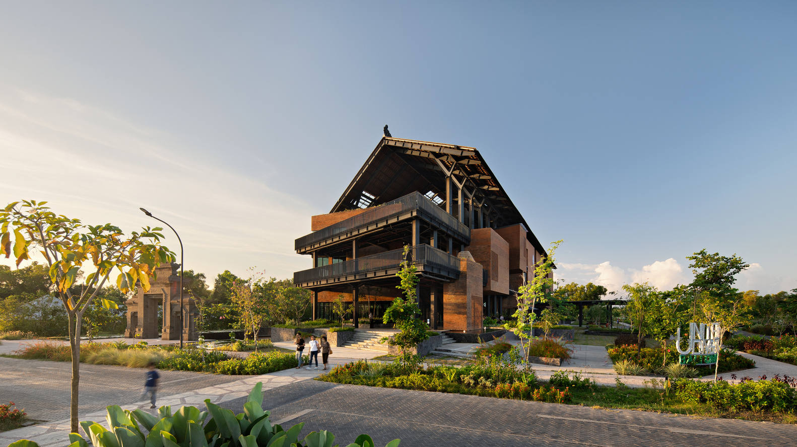 The UID campus located on Kulakula Island in Bali, Indonesia is a comprehensive facility that integrates commercial, educational, office, and event functions. The building faces the sacred Mount Agung, the highest peak in Bali.