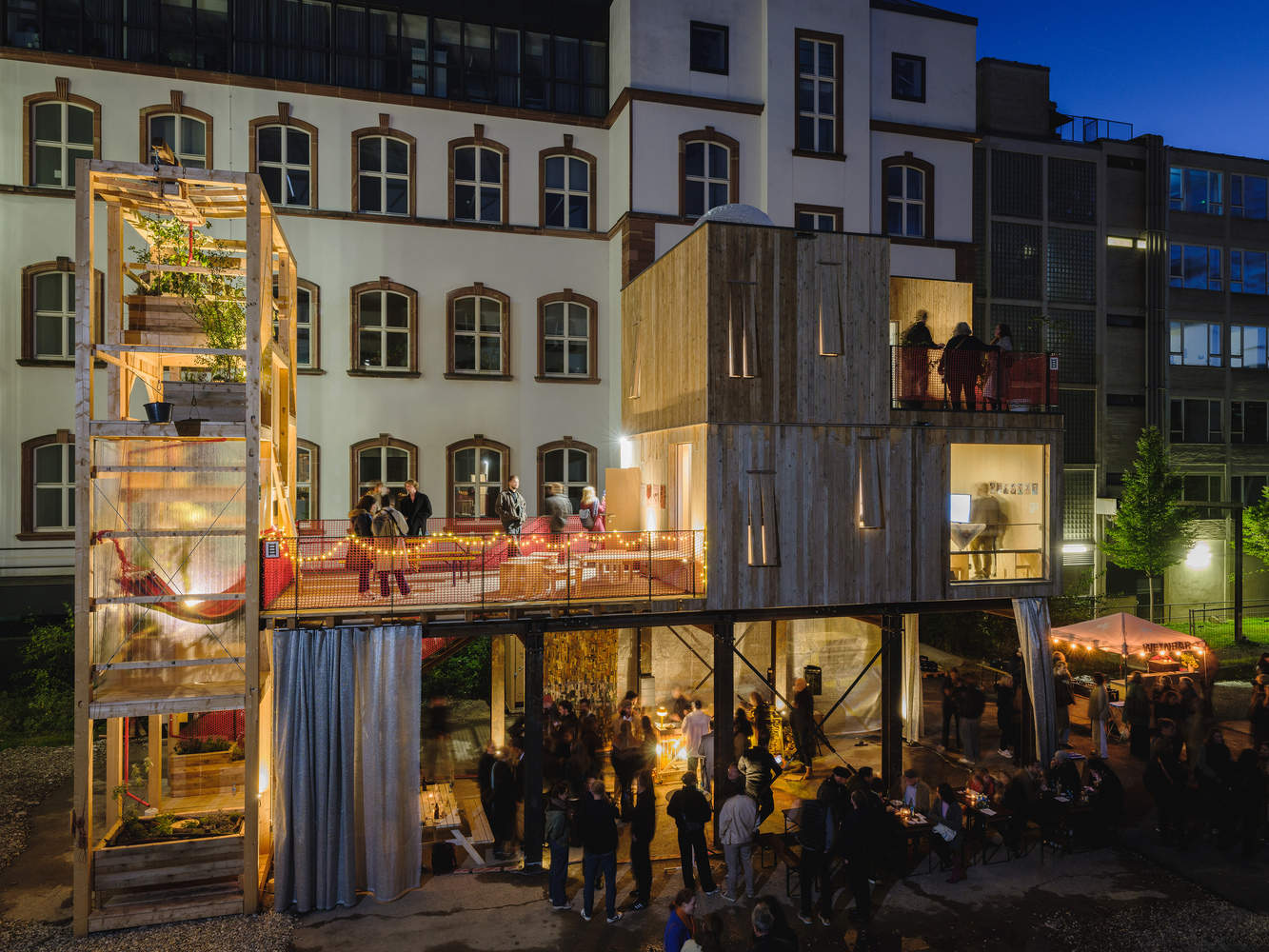 来自斯塔德尔美术学院(Städelschule)和法兰克福应用科学大学(Frankfurt University of Applied Sciences,简称 Frankfurt UAS)的学生们在森肯伯格研究所(Senckenberg Research Institute)的庭院内实现了一个开创性的临时建筑项目 “The Frankfurt Prototype”。该临时建筑的特点在于:一楼设有开放的多功能市场大厅,而二楼则为学生们量身定制了灵活的生活和工作空间。该建筑融合了可持续材料与可适应的空间概念,旨在促进人与人之间的交流并鼓励大家去亲近自然。巴克楼·莱宾格建筑事务所(Barkow Leibinger)在项目的规划与实现过程中为学生们提供了支持,并协助他们直至该项目于 2024 年秋季完工。