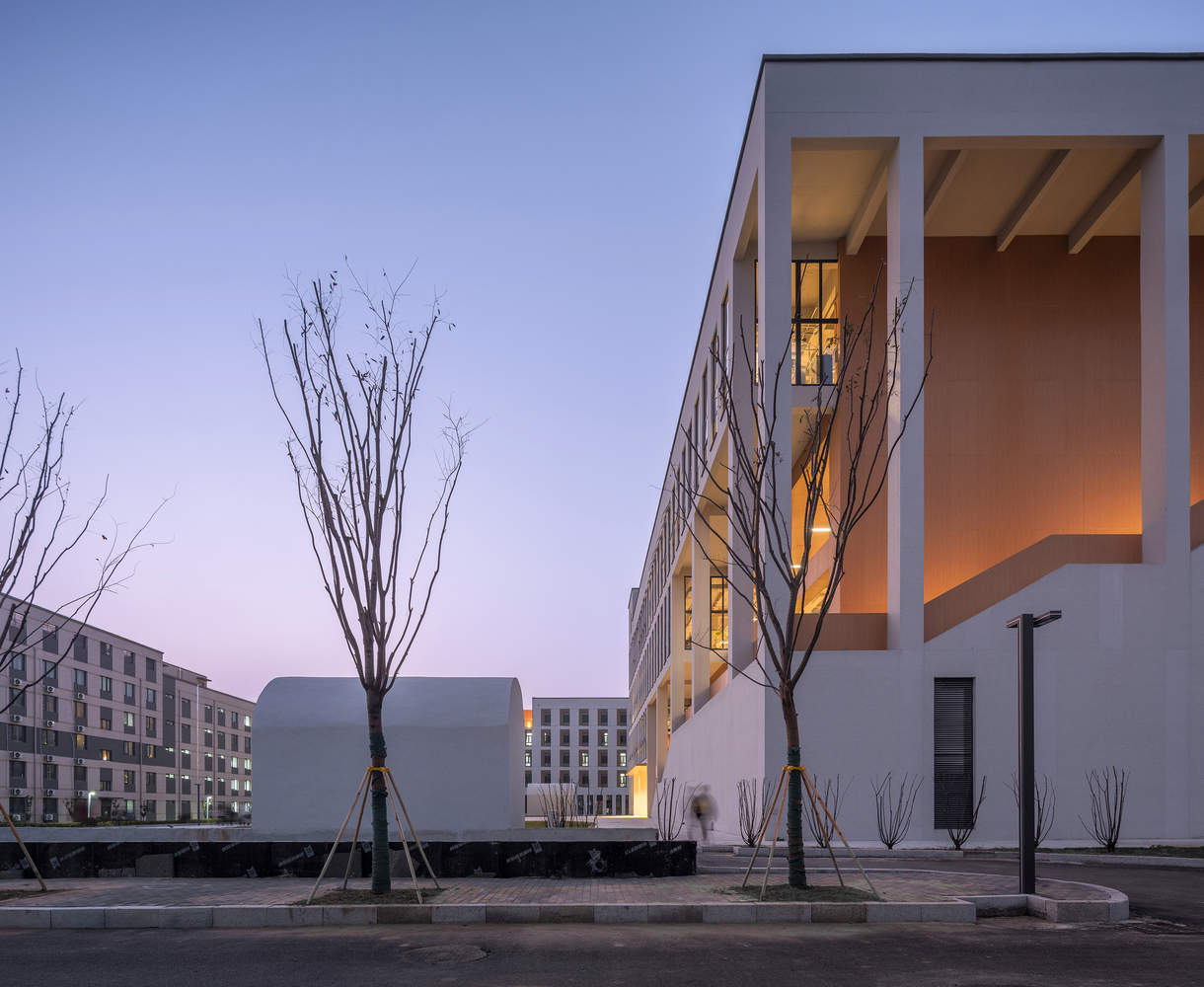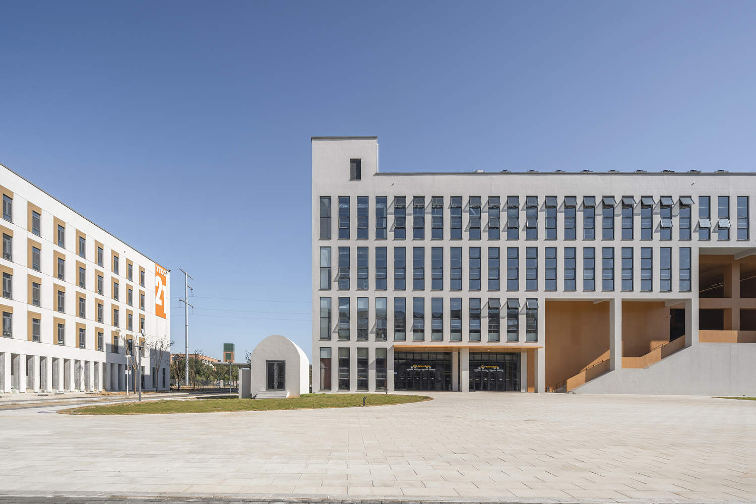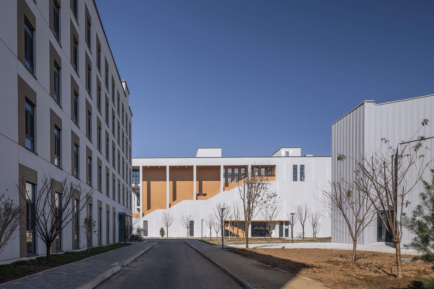 The new campus planning adopts "multi center, community-based" open blocks to organize the layout of building functions and create an "open, green, shared, and dynamic" campus life.. The basic building units that make up the block are in the shape of a mouth, with the enclosed inner courtyard space connected to the external space, becoming an organic component of the campus open space. Even in enclosed student dormitories, the inner courtyard can still be freely accessed through an open foyer. The spatial planning of the entire campus breaks the traditional definition of internal enclosed space and external open space, and is divided into two main parts: open communication space and closed functional space. Closed functional spaces ensure differentiated functions, while open communication spaces organically combine these differentiated functional spaces into communities. The squares, streets, and gardens distributed within the campus constitute multiple centers of the "city" block, while the open courtyards of each building form a community space that is similar in form but diverse in content.
