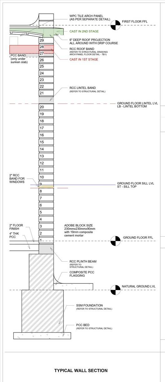材料和结构细节的选择充分考虑了当地的土壤条件和抗震要求。现场发现的石块和卵石被用于地基施工,而含砾土则被用来手工制作土坯砖。这些砖的裸露砌体呈现出柔和的天然色调,营造出平和的视觉体验。粗糙的墙体纹理与起伏的拱形天花板相结合,有效降低了环境噪音,为学生提供了一个安静、感官友好的学习环境。