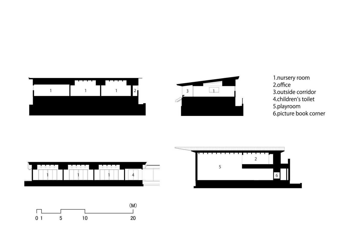 建筑空间与儿童互动: 幼儿园的建筑空间设计以儿童为中心,注重培养他们的自主性和独立思考能力。外廊的设计借鉴了日本传统建筑“縁側”的理念,将日常动线延伸到室外,鼓励孩子们在自然环境中自由活动和探索。这种设计并非仅仅是为了美观,更是为了让孩子们在潜移默化中培养感性认知,激发他们的好奇心和求知欲。就餐区的设置也颇具巧思,通过可完全打开的窗户,让孩子们在用餐时也能欣赏到季节和树木的变化,从而加深他们对自然的感悟。这种设计理念摒弃了传统幼儿设施过度关注安全性和舒适性的倾向,转而注重培养孩子的独立性,为他们提供了一个充满活力和探索乐趣的成长环境。