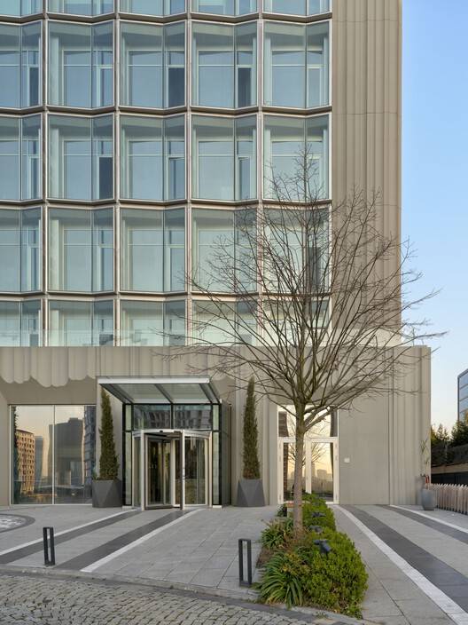 地质与设计的对话:项目最大的亮点在于其对场地地质背景的深刻理解与回应。设计团队并未将建筑视作孤立的个体,而是将其与伊斯坦布尔的城市地貌和地质历史紧密联系起来。建筑师从场地所处的米奥新世时期地层结构中汲取灵感,将片岩的层状纹理转化为外立面算法化的垂直肌理,并通过对石英晶体的探索,运用玻璃材质,营造出类似晶体的视觉效果。这种设计策略不仅赋予了建筑独特的视觉特征,更使其在历史文脉中找到了根基,实现了建筑与环境的和谐统一。