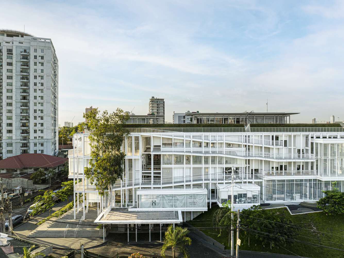 The Corner House is located at the intersection of two busy streets in San Juan, Manila, meeting the city's demand for outdoor public spaces suitable for tropical climates. It has become a refuge for dense urban environments, providing a space for relaxation and socializing.