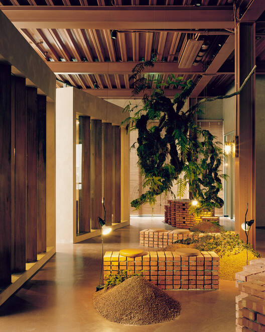 At the headquarters of this developer, the steel frame structure of the factory outlines the overall layout, echoing the historical origins of its brick kiln. The space is deconstructed and cleverly embedded in sequence. The design abandons the traditional commercial atmosphere and emphasizes the concept of "openness to the community", sharing the brand vision with the public, and cleverly integrating the reinterpreted factory aesthetics and Taiwanese forest imagery into the urban texture.