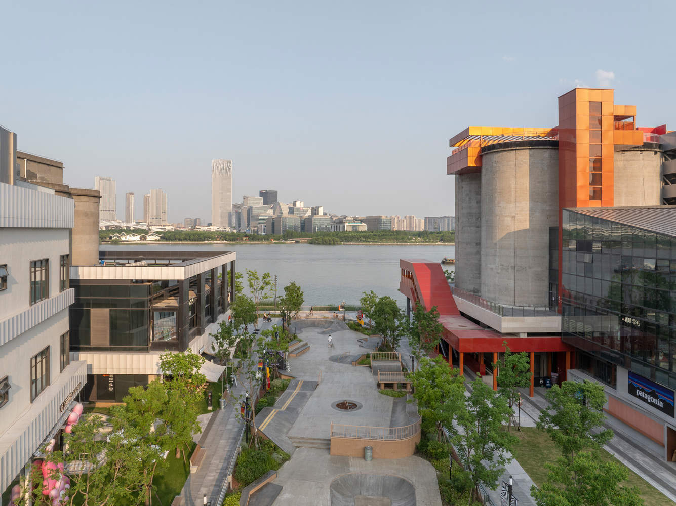 From the architect. MVRDV has completed the renovation of GATE M West Bund Dream Center, upgrading a former cement plant into a riverside cultural and leisure area, adding new highlights to Shanghai's growing West Bund cultural district. MVRDV intends to combine buildings from different periods into a cohesive urban space, reuse existing buildings to minimize carbon emissions, and create unique personalized spaces with bright orange flow elements. People can enjoy a relaxing stroll along the river, as well as experience the diverse range of shopping, dining, skateboarding, rock climbing, exhibition visits, and activities offered by Dream Center. This has become one of the popular destinations of choice for Shanghai citizens and tourists, and has won numerous awards and honors.
