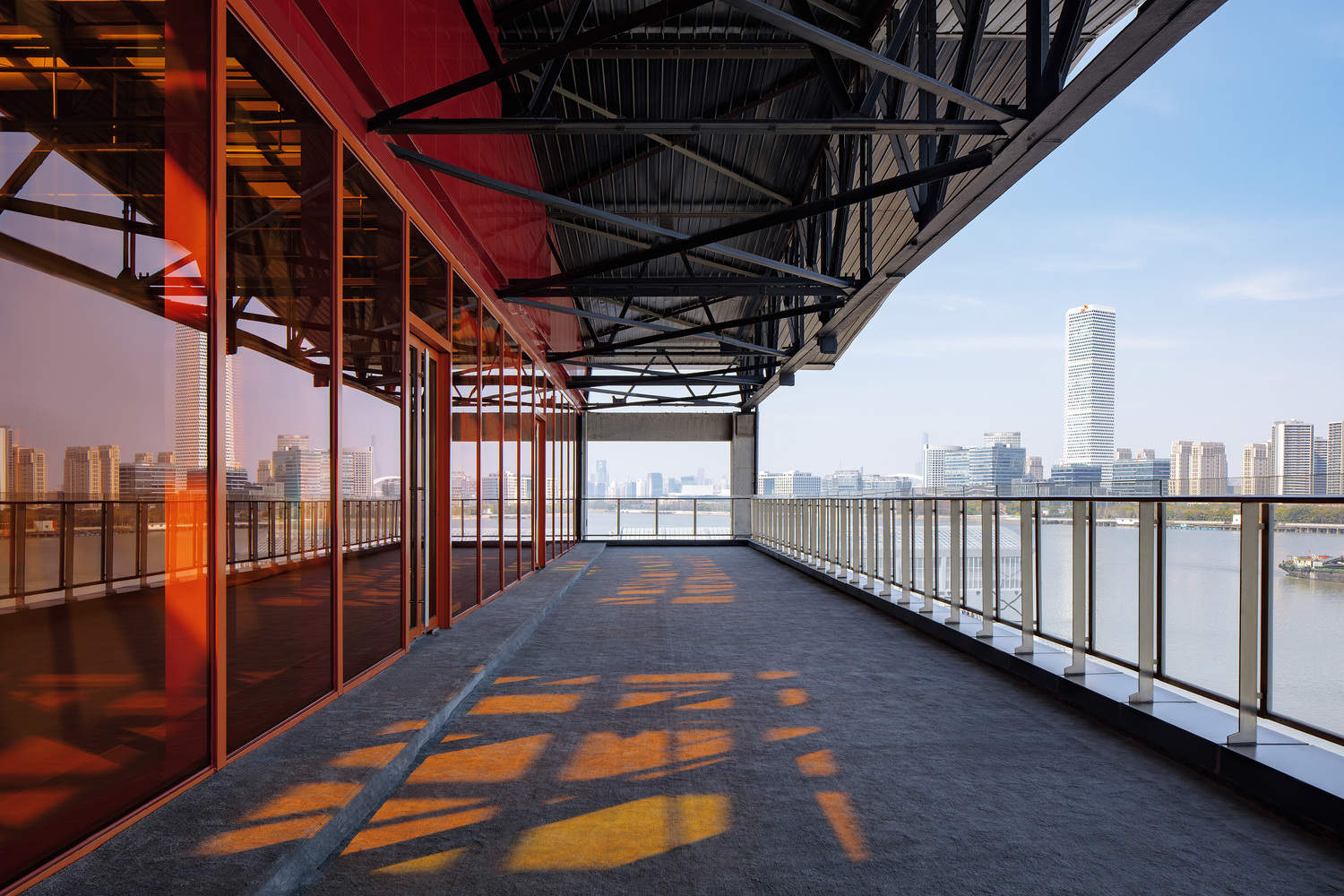 The location of GATE M West Coast Dream Center was once the site of the largest cement plant in the Far East. At the 2010 Shanghai World Expo, cement plants and other industrial functions along the river were relocated, and the waterfront space gradually transformed from a production oriented shoreline to a living oriented shoreline, with more open to the public. Before MVRDV started the renovation design, the project site was mixed with two completely different sets of buildings: the large industrial building complex left over from the Shanghai Cement Plant, and the new but unfinished building complex added in the previous round of renovation plan.