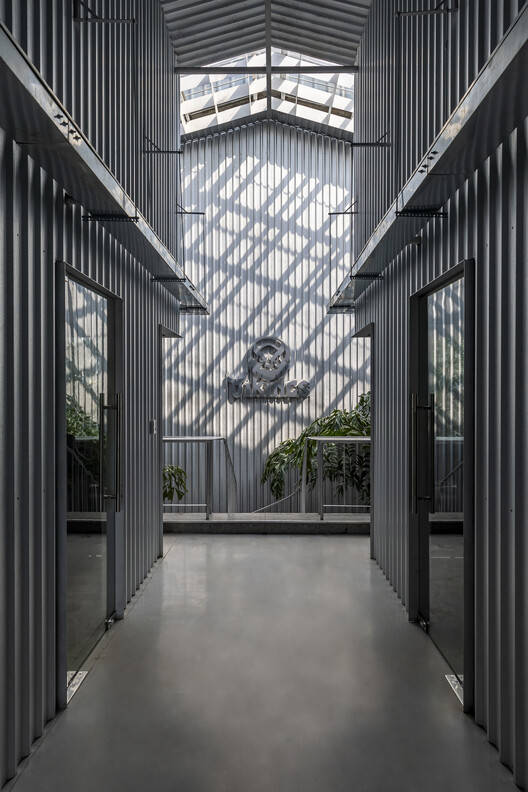 The roof truss structure retains the original design, but adds multiple insulation and sound insulation layers, using a polyurethane roof system (special building material for cold storage walls) and a bottom ceiling system. The 1.2-meter-high roof structure integrates technical equipment to form an air cushion layer, which significantly reduces heat conduction to the top-level space and greatly reduces energy consumption during the operation of the air conditioning system. The wall system is integrated with the original brick wall through the foam isolation layer to enhance the overall thermal insulation performance of the building.