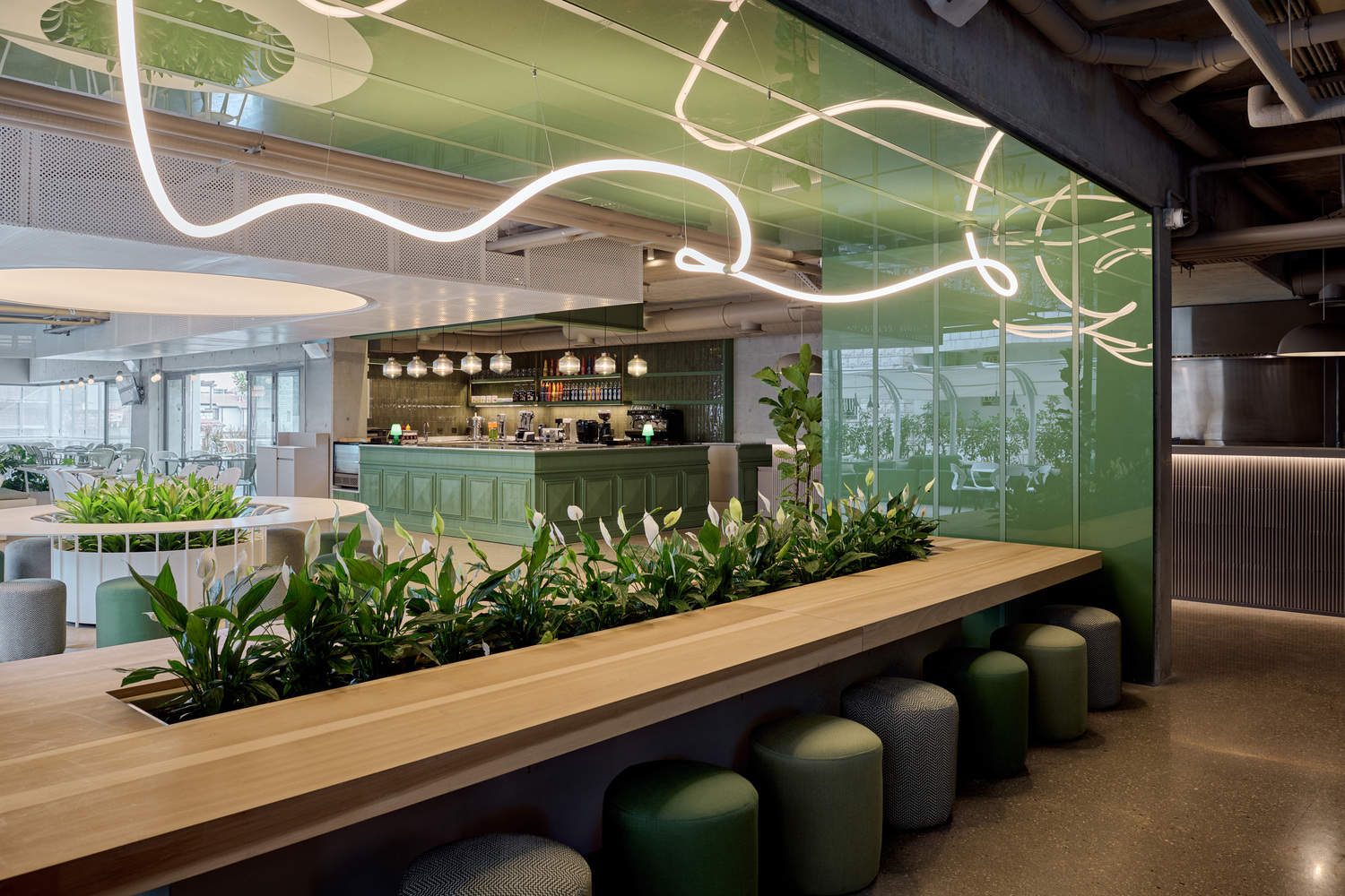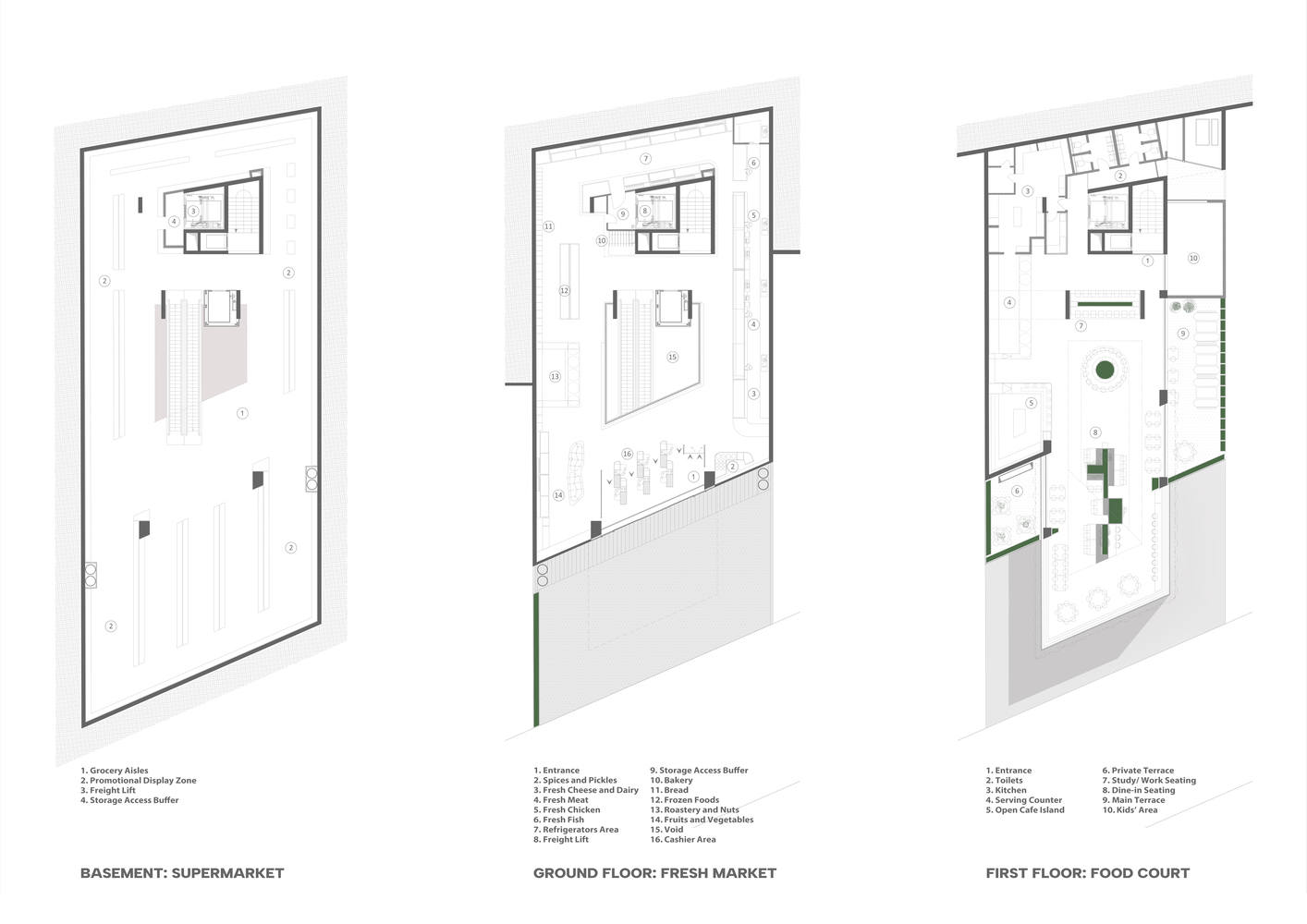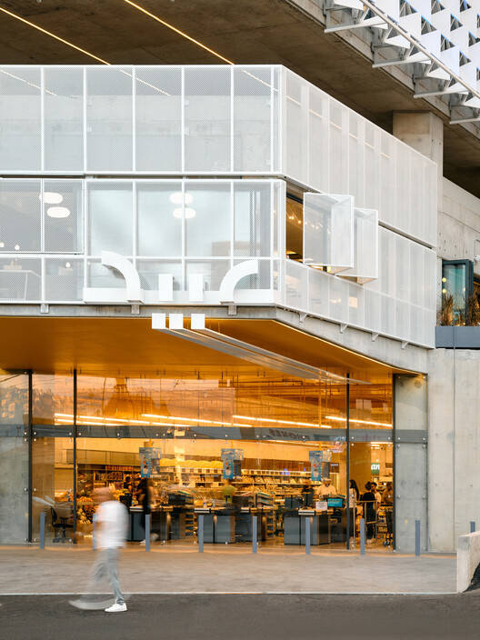该项目融合了商业空间与社会空间,内设一座三层超市、美食广场及露天停车场。上层则布局办公区域与零售商铺。通过精心规划,确保了人流动线顺畅与运营无阻,全面提升了功能性与整体体验感。清晰直观的动线设计,让用户能够毫无阻碍地自如穿行。