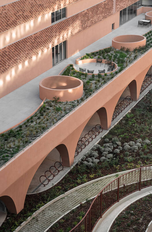 HUB26 致力于获得 LEED(能源与环境设计先锋奖)金级认证,为此整合了多项可持续性特色,例如绿色屋顶和露台,这些设计不仅有助于提升生物多样性,还能改善微气候条件并降低能耗。通过使用本地采购的材料和高效节能的系统,该项目进一步减小了对环境的影响。此外,一个带有阶梯花园的景观化户外区域为人们提供了一个宁静的聚会空间,有助于促进身心健康和社会互动。