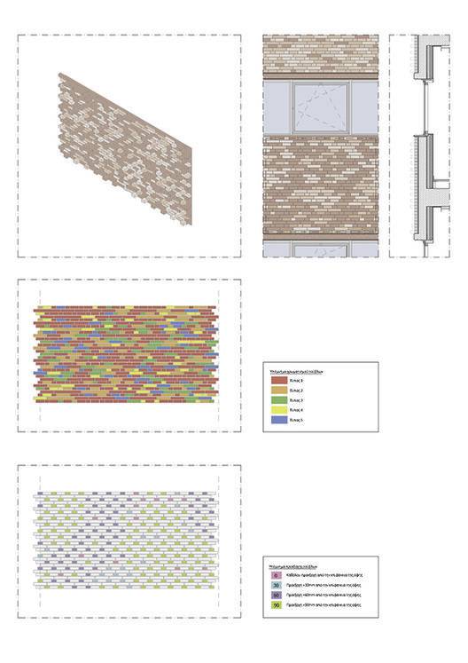 立面采用定制设计的陶瓷砖,以三维图案排列,使用五种色调的赤陶。 从底部较深的色调过渡到顶部较浅的色调的渐变效果,营造出建筑融入雾中的错觉。 该项目采用 BIM 技术开发,进行了广泛的数字分析,以优化立面实施。 与 S. A Anselmo 合作的专业研究,创造了定制陶瓷砖,在美学吸引力与技术精度之间取得了平衡。 参观了制造商在意大利的工厂,进行了实践评估,通过细致的颜色和纹理改进确保了长期耐用性。