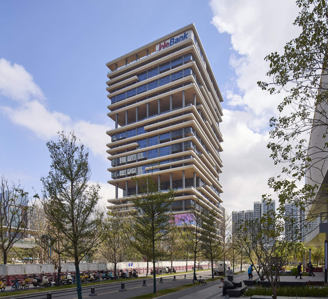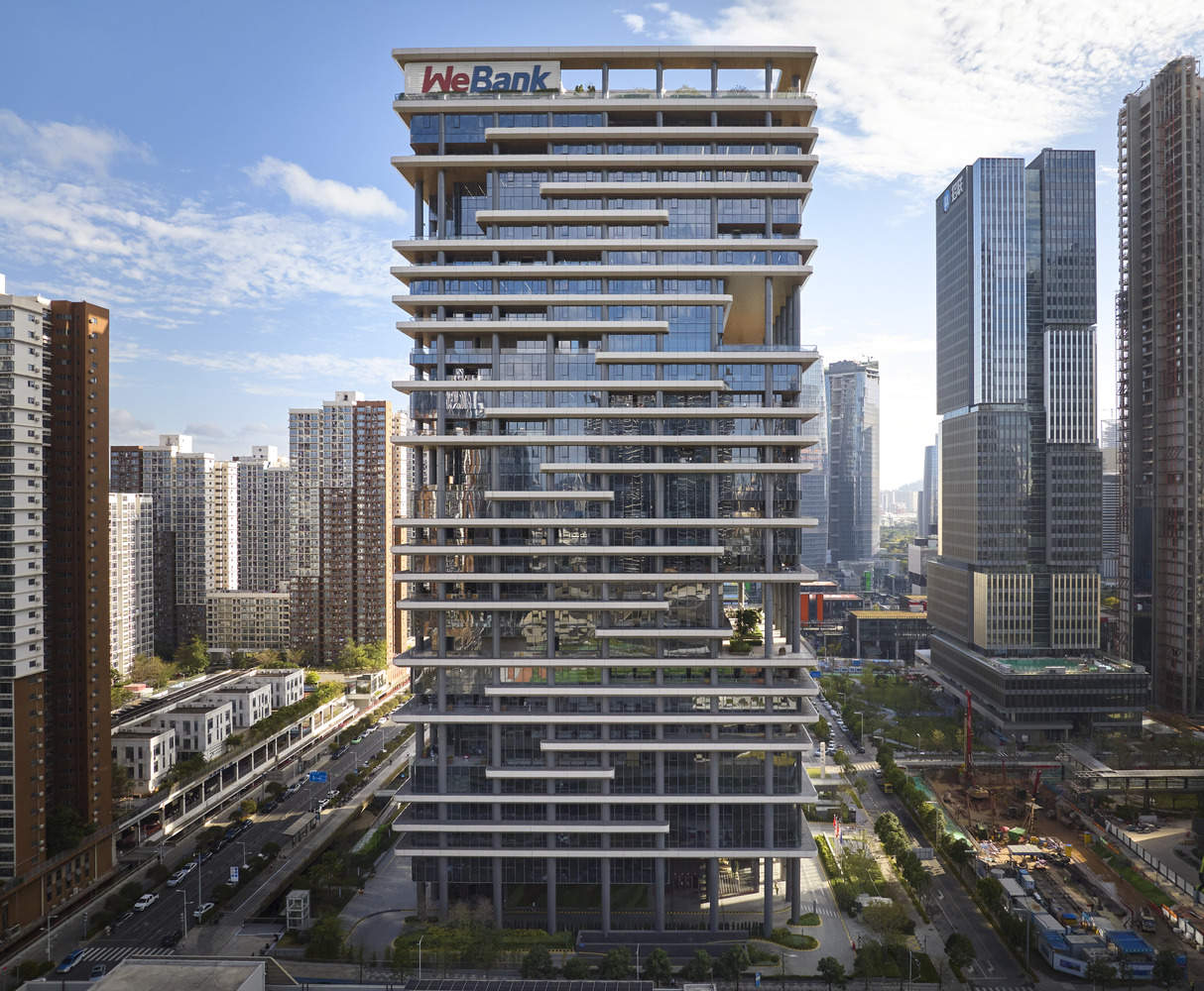 From the architect. The new headquarters building of WeBank, designed by SOM, has been officially completed. Tencent's WeBank is the first Internet bank in China and a leader in the field of financial technology. This 30 story, 148 meter high tower is located in the Qianhai Business District of Shenzhen. SOM's design reinterprets the health oriented office space concept - placing employee comfort, spatial flexibility, and work efficiency first to meet the increasingly changing needs of employees in the digital age.