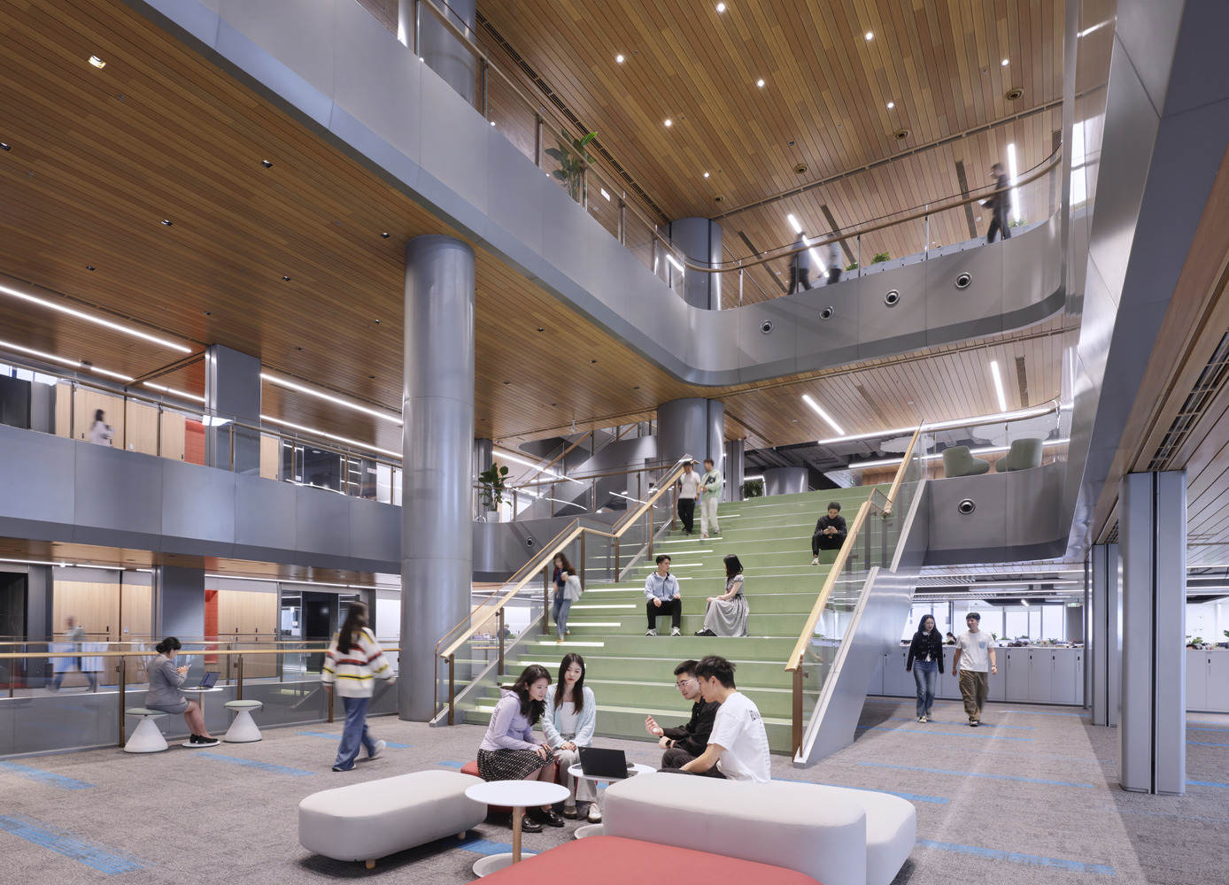 The overall indoor environmental quality (IEQ) strategy runs through design techniques related to comfort, air quality, and energy efficiency, with natural ventilation being the core. In the WeBank project, we developed an efficient system that minimizes reliance on mechanical refrigeration under suitable conditions. This system not only improves indoor comfort but also has a positive impact on users' cognitive function and health, "said Luke Leung, SOM Design Director.