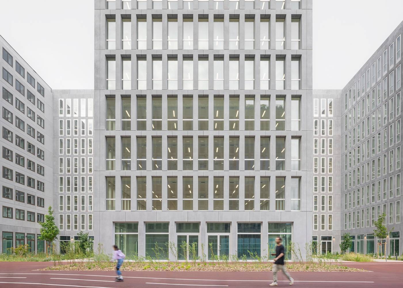 可持续设计与材料运用:该项目在可持续性方面表现出色,体现了对环境的责任感。建筑师选用了低碳材料,并整合了可重复使用的组件,从而显著降低了碳足迹。值得称道的是,项目通过了多项国际认证,例如 HQE 和 BREEAM,这充分证明了其在能源效率、材料选择和整体环境友好性方面的卓越表现。此外,建筑师对建筑的能耗进行了精细考量,并通过合理的建筑结构设计、门窗布局以及地热解决方案等手段,最大限度地降低了能耗,实现建筑在热平衡和光线平衡的和谐统一。