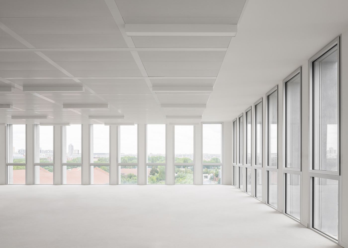 空间灵活性与结构创新:JUMP Building 在空间设计和结构方面展现了高度的灵活性和创新性。建筑师提出的设计原则包括设计灵活的空间、最小化材料使用以及确保结构坚固。项目采用了预制混凝土“T”形构件,不仅实现了结构和立面的统一,也简化了施工流程。内部空间采用无柱设计,为后续的使用提供了极大的灵活性。不同功能区域之间的过渡自然流畅,同时,建筑外立面的细节处理,如不同颜色的阳极氧化铝门窗框,以及与周围环境的互动,都体现出建筑师对空间、材料和光线的精心考量,使得建筑在满足功能需求的同时,也具备了艺术性。
