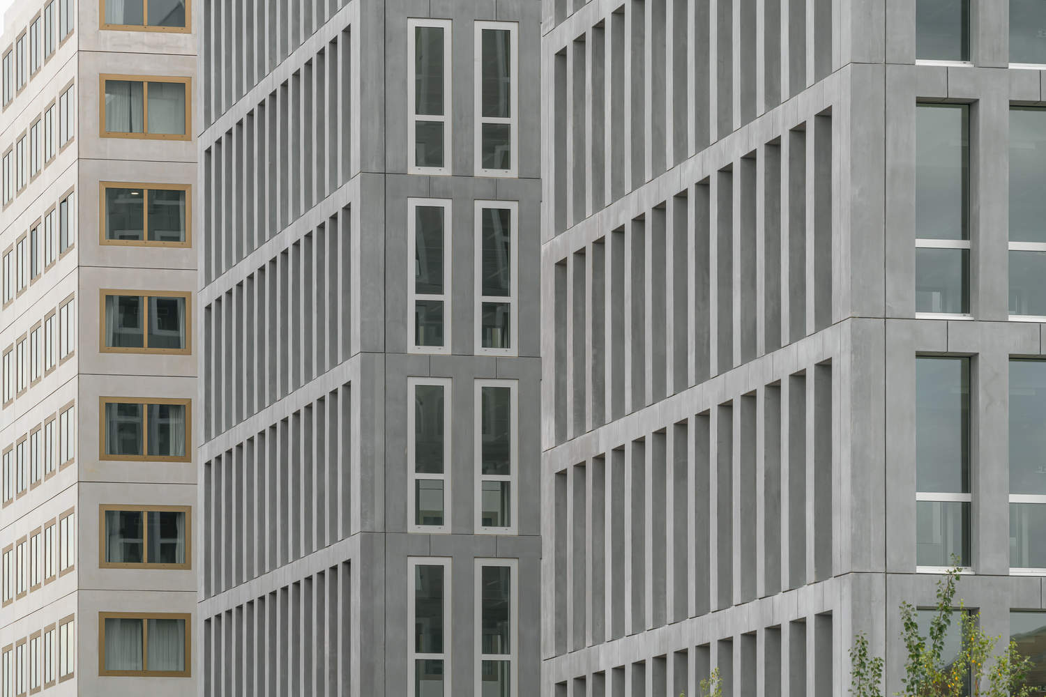 Anodized aluminum door and window frames come in various colors: hotels use copper to reflect their surrounding environment; The office adopts silver to create an aesthetic effect of aluminum and concrete in the same color tone. The door and window frames on one side of the street are hidden on the inside, enhancing the texture of the concrete. The door and window frames on one side of the garden atrium are flush with the facade, enhancing the excavation effect of the atrium. The glass and large-sized aluminum frames reflect the sky and ambient light. The client has set clear and ambitious goals from the beginning: to create a model project with low-carbon impact, high energy efficiency, and innovative solutions. KAAN Architecten has chosen low-carbon materials and integrated reusable components, reducing its carbon footprint by nearly 30% compared to the Carbon 1 threshold of the E+C label. The overall greenhouse gas emissions are 1124 kgCO2eq/m ², of which 842 kgCO2eq/m ² are attributed to building materials and energy consumption.