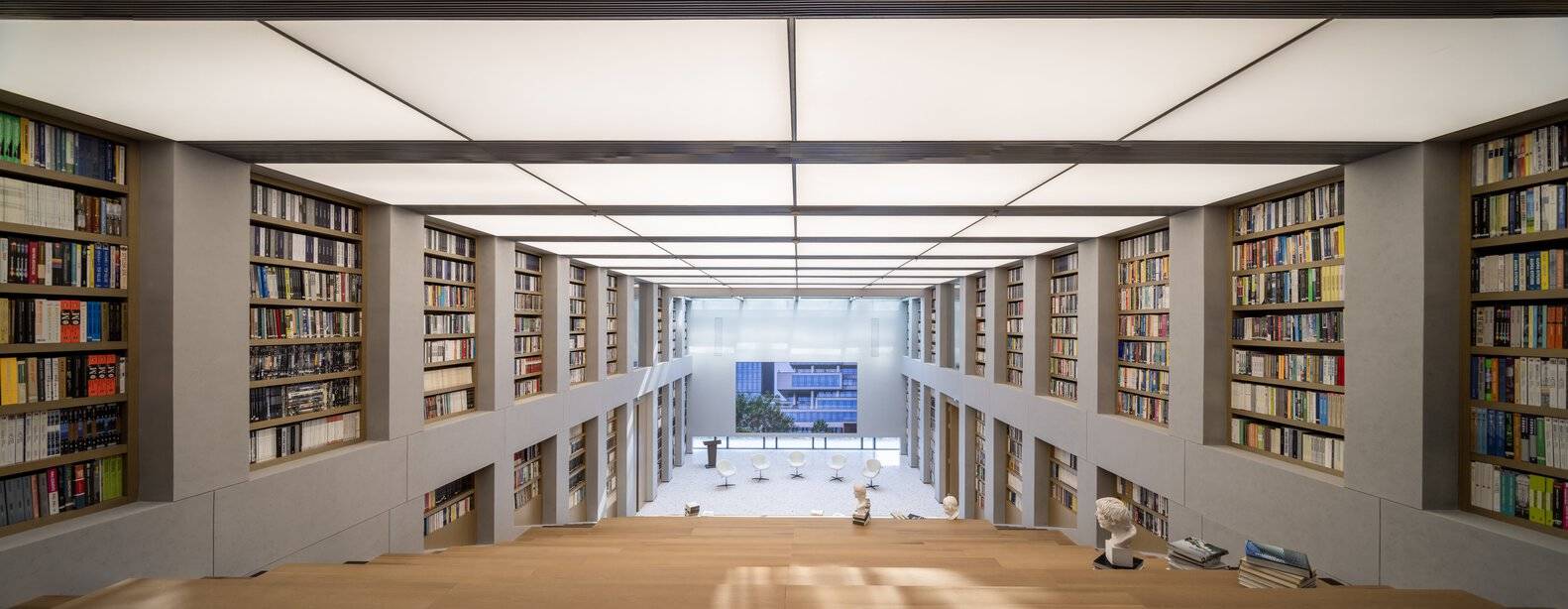 回到室内空间,作为设计公司的办公总部,设计师憧憬何种空间?首先应该是文化的,更关注使用者的人文需求及情感体验;其次应该是开放的,以促进工作交流并激发灵感,这同样是对“自然剧场”主题的回应。一处可以无限延伸的空间,让建筑作为总部大厦,不仅承载着办公的功能,更是一个人们聚集、交流、体验和分享情感与文化的平台。我们同样创新引入了文化建筑的做法,取消大量实墙,建筑内部的“街道”空间两侧,每一个诸如会议、展厅的功能房都像一个独立的艺术品陈列其中,在室内创造出仿佛在城市中漫游的室外感。功能与功能之间的界限模糊化,整体空间更加弹性,可以为其中的人们提供独立私密、共享开放等不同环境的自由选择、随意切换。各层之间通过垂直中庭连接,水平和垂直的空间界限因此被打破,从而激发更多的活力和交流。通透的玻璃,与不时出现的“观景窗”,将室外的环境积极的引入到室内,到了夜晚,室内漫射出来的灯光将安静工作和不断走动的影像渗透到室外,进一步模糊室内外的界限,使建筑与环境融为一体。