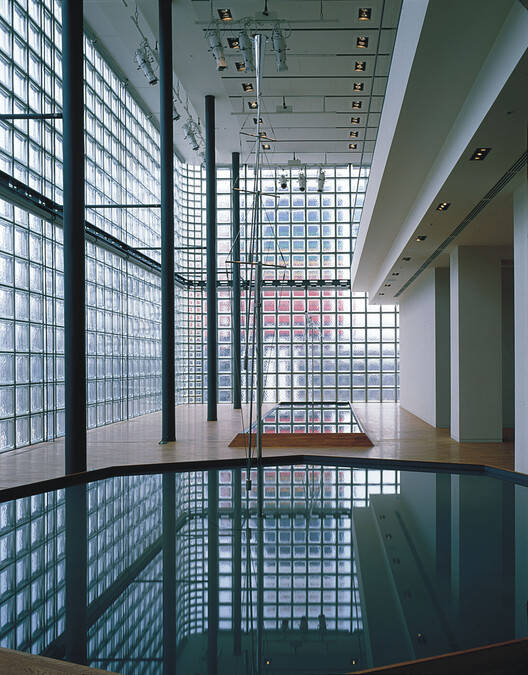 AD Classics: Interdesign 大楼 / Khalil KhouriThe core of Herm è s House is its intricate glass curtain wall, composed of customized glass bricks manufactured by Vetroarredo, a company based in Florence, Italy. Each brick has a size of 450 millimeters square, much larger than standard glass bricks, and has an embossed texture finish that makes it appear semi transparent rather than transparent. This subtle translucency creates a shimmering surface that evokes the soft glow of Japanese lanterns, scattering natural light indoors during the day and emitting warm ambient light at night.