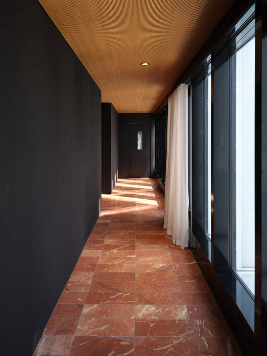 材料 - 用于 Aurore 大楼建设的材料是其身份和城市设计不可分割的一部分。与光滑且封闭的玻璃外立面形成鲜明对比,建筑内部核心采用了不透明、温暖且富有肌理的材料。采用跨度达 15 米的钢结构,最大限度减少了竖向支撑,使建筑立面得以如幕帘般自由展开。玻璃百叶的严格重复,与建筑“非理性”的几何形态及有机流动相结合,赋予建筑一种超越时间的优雅感。所选材料均具备天然特性——未经修饰、可持续且生态友好,这种选择不仅是审美考量,也是对环境可持续性的承诺,突破了传统商业空间惯用的石膏墙面和地毯装饰模式。