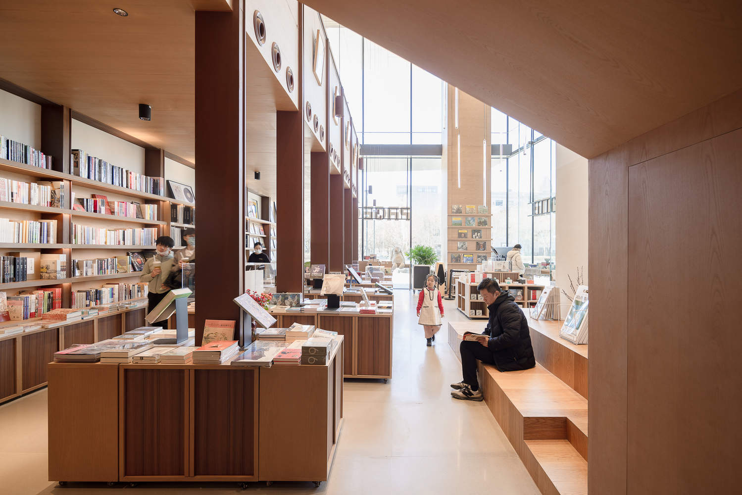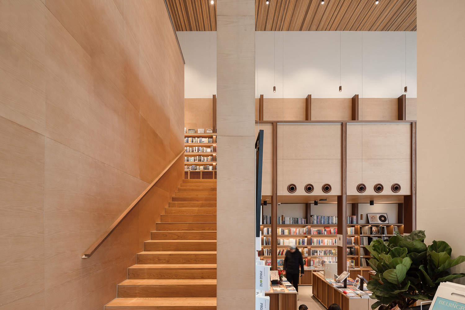 自然材质与人文关怀: 项目在材料的选择上非常注重自然和质感,大量使用木质材料,营造出温暖、舒适的氛围,与黑胶唱片、书籍的质感相呼应。这种对自然材质的运用,不仅体现了对空间本质的尊重,也为读者提供了亲切、放松的体验。 同时,设计细节中融入了人文关怀,例如阅读区域的布局、灯光的设置,都旨在为读者提供更舒适、更专注的阅读体验。 项目不仅仅是一个商业空间,更像是一个可以让人放慢脚步,感受阅读和音乐魅力的“城市长椅”,体现了设计师对场所精神和人文关怀的深刻理解,创造了一个真正属于读者的空间。