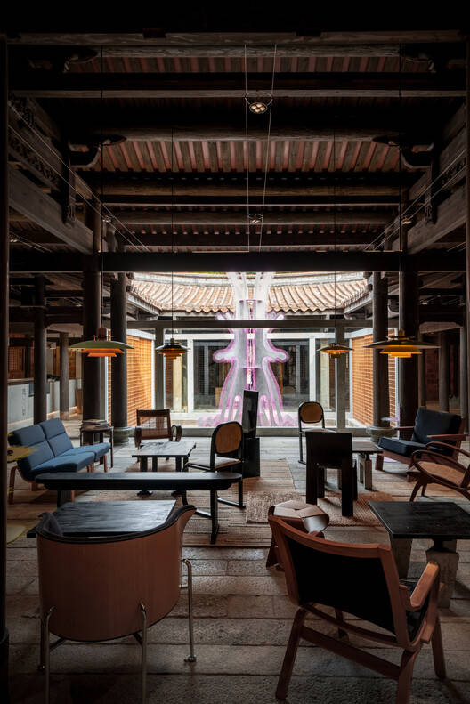 传统与现代的和谐对话:项目的精髓在于对传统建筑语言的尊重与创新性运用。设计团队巧妙地将闽南传统古厝和1980年代红砖楼改造,在保留原有建筑特色的基础上,融入了混凝土体块、柚木、泉州白石等现代元素。这种手法使得空间既保留了传统建筑的质朴感,又散发出摩登的现代气息。南洋桌椅、现代主义家具与灯饰的巧妙搭配,更营造出一种传统与现代相互碰撞的趣味。这种对历史文脉的尊重和对当代审美的回应,使得项目在传承与创新之间找到了完美的平衡点。