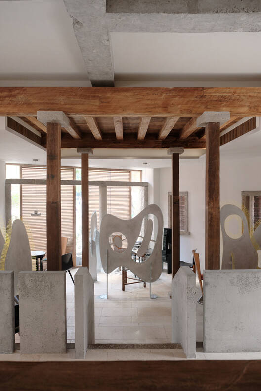 This design is based on the renovation of two Minnan buildings from different periods (traditional ancient houses and red brick buildings from the 1980s). While preserving and organizing the traditional architectural language, DEVOLUTION degraded buildings are treated and intervened with restrained elements - concrete blocks and warm wild teak wood and Quanzhou white stone collages; The interaction between Nanyang tables and chairs, as well as modernist furniture and lighting from the 1970s and 1980s, creates a space that is both traditional and modern, with some playful collisions.