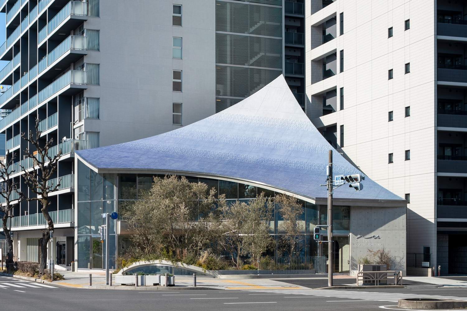 The roof of the Japanese AOI CELESTIE coffee bakery is magnificent, covered with 28000 gradient blue tiles that shimmer like sparkling waves, gently situated at the top of the building. The caf é is located in a corner of the bustling city, surrounded by high-rise buildings and facing the station. Yuko Nagayama&Associates has created a multifunctional complex here, making it a new landmark in the community.