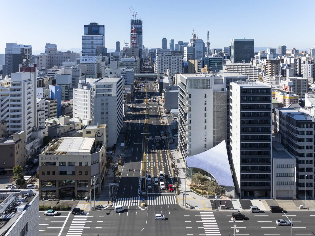 日本 AOI CELESTIE 咖啡烘焙坊的屋顶气势恢宏,覆有 28000 块渐变蓝色瓷砖,如粼粼波光般闪耀,轻柔地坐落于建筑顶端。该咖啡馆位于繁华都市的一隅,周边高楼林立,正对车站。永山祐子建筑设计事务所(Yuko Nagayama & Associates)在此打造了一座集多功能于一体的综合体,并使其成为社区新地标。