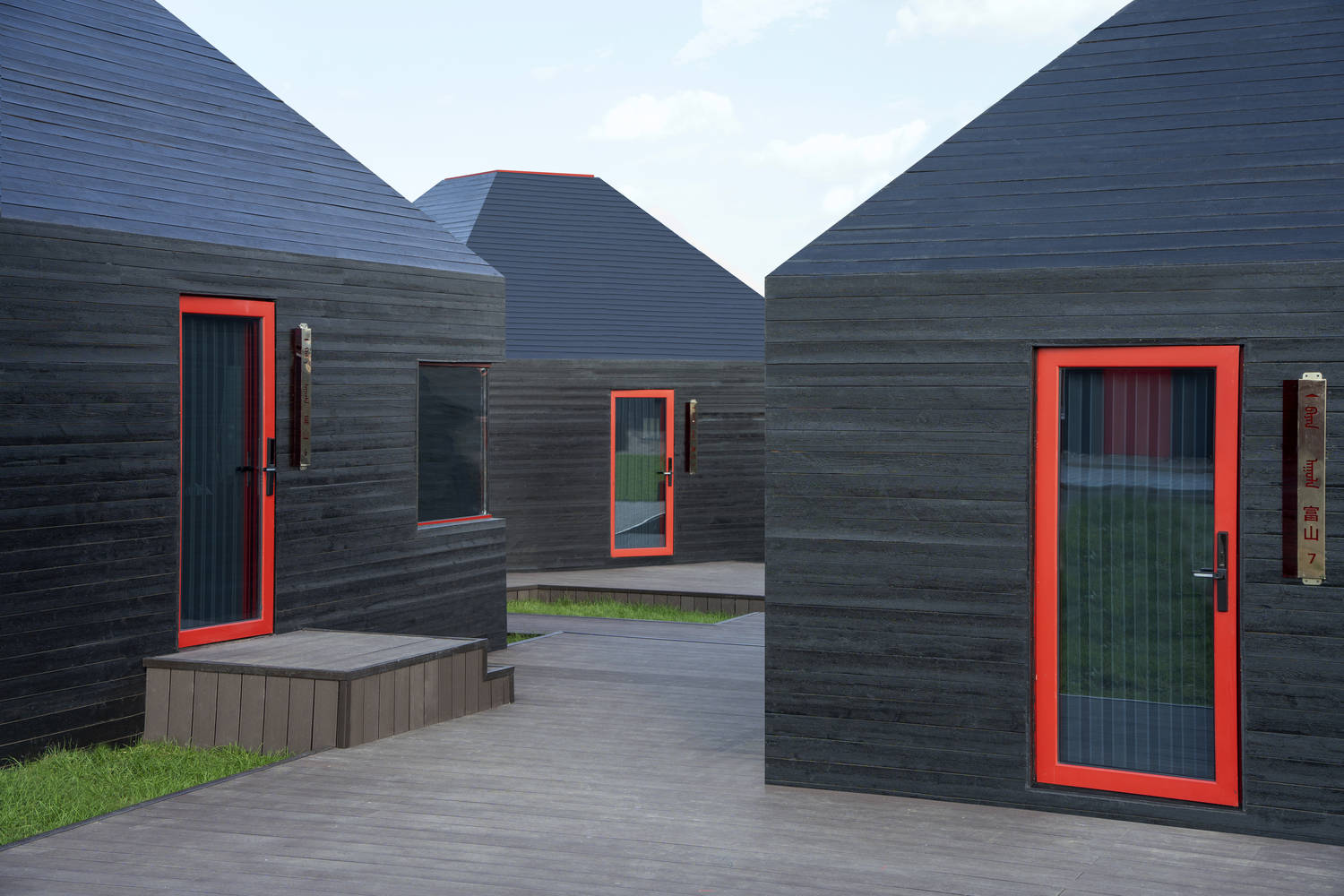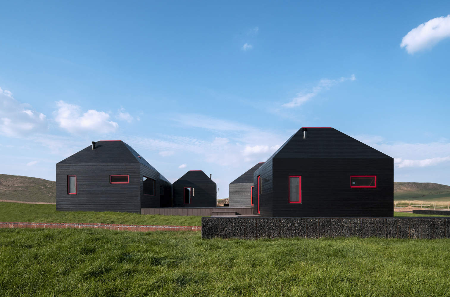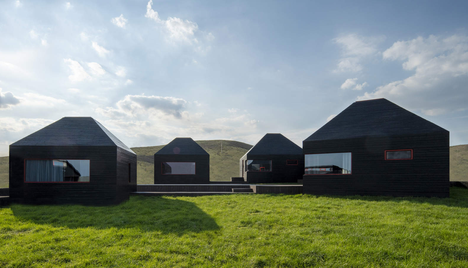 The building adopts a decentralized layout, which is divided into seven buildings, five accommodation buildings, one catering building, and one reception center building, effectively reducing the volume, maintaining coordination with the herdsmen's housing, and increasing opportunities for tourists to experience nature.