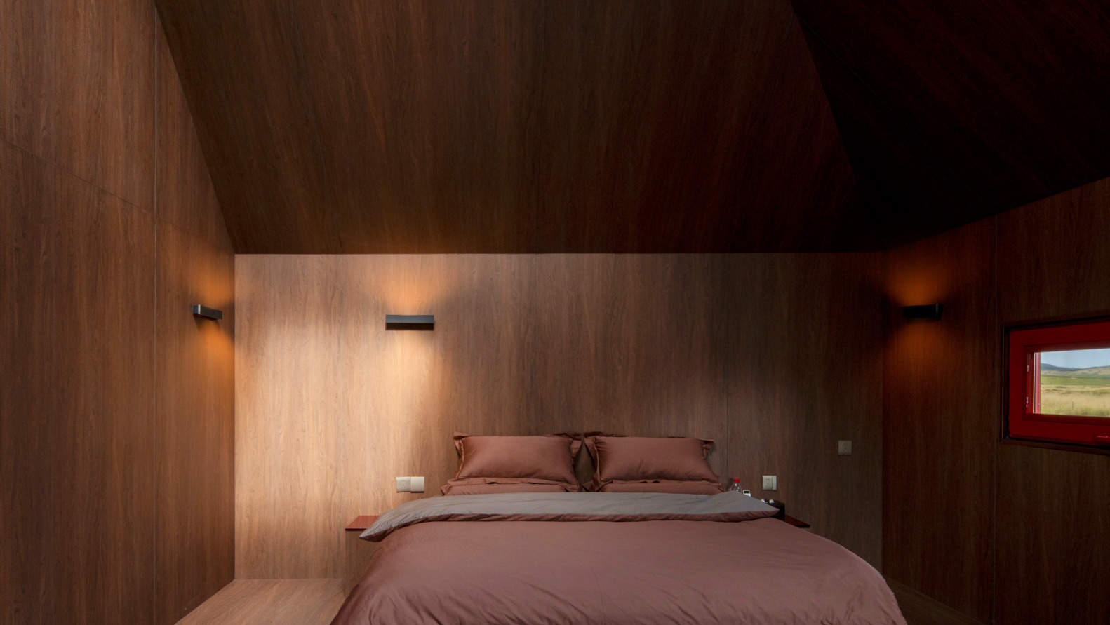 建筑采用分散式布局方式,整体打散为七栋,住宿五栋,餐饮一栋,接待中心一栋,有效减弱了体量,保持与牧户住房的协调性,同时增加了游客体验自然的机会。