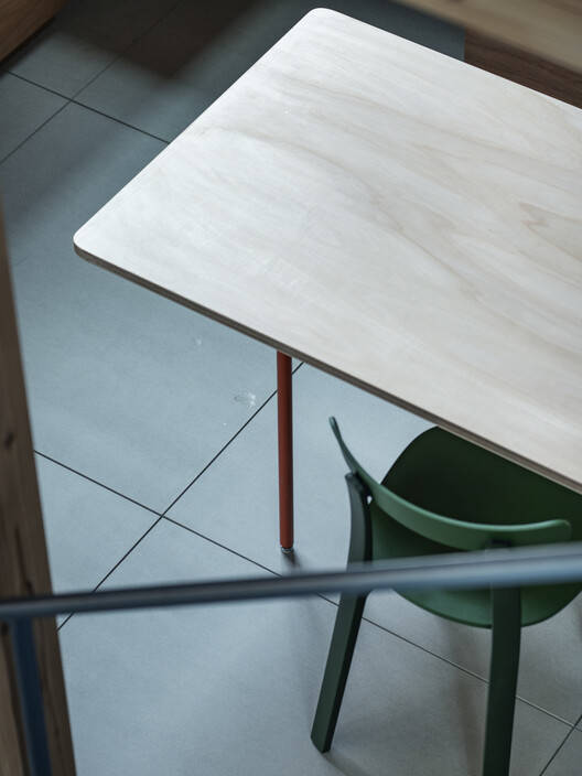 一楼设有用餐区和各类生活功能区。中央的一张大型餐桌成为多功能核心区域,集用餐、学习、做家务乃至远程办公于一体,是各种日常活动节奏和谐共存的空间。半地下室和三楼分别设有面积约 4.5 至 7.3 平方米的小房间。这些房间可通过滑动门和可移动家具与其他房间或共享空间相连,让住户能够自由调节空间的开放程度与私密性。因此,这座住宅能够随着居住者及其生活方式的变化而灵活适应。