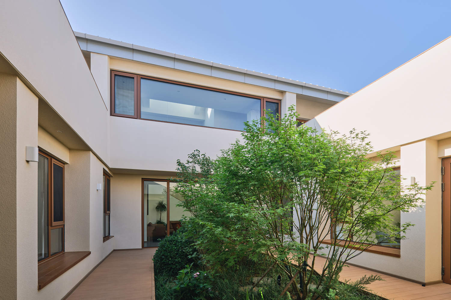 At the construction level, we have made practical choices that are suitable for local construction conditions, climate environment, and budget conditions.. A tricky situation is that the local civil construction team can only make brick and concrete structures, so we had to change the frame structure plan to brick and concrete midway, which added several sections of walls. However, fortunately, the construction team was able to make concrete upturned beams. The upturned beam on the roof leaves space for the waterproof insulation layer, while also preventing the crossbeam at the eaves from appearing too heavy. The second floor cantilevered upturned beam is hidden in the horizontal window sill, making the eaves and ceiling clean. Due to the relatively extreme winter climate in the suburbs of Beijing, we use the method of external insulation with water and sand to wrap the exterior walls. In the end, Xianxin Mansion was completed at a relatively low cost, and the owner's family enjoyed this relaxed and comfortable atmosphere very much after moving in, which made us very pleased.