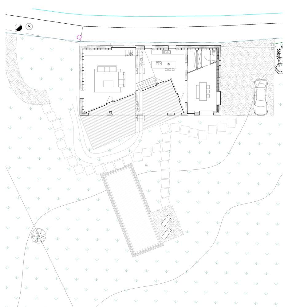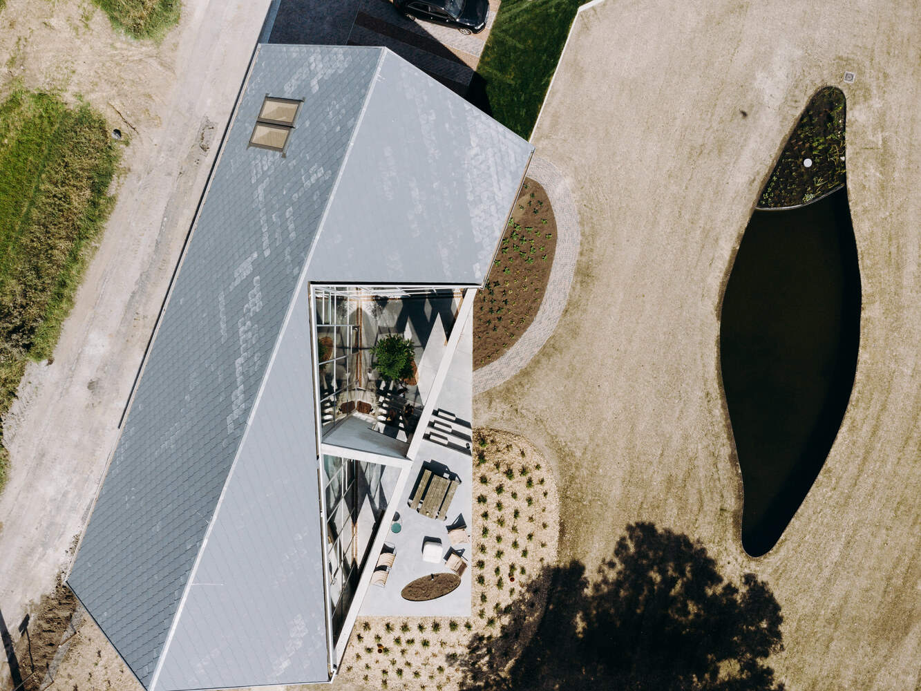 为确保热舒适性、可持续性及能源效率,OYO Architects 在改造过程中采用了生态环保且可循环利用的材料。旧有的石棉屋顶被彻底翻新,房屋内还安装了太阳能板及其他环保技术设备。由 Denis Dujardin 操刀的景观设计在塑造周边环境方面发挥了关键作用,通过运用本地植被,实现了与周边乡村景观自然流畅且相得益彰的融合。此外,还设计了一套巧妙且隐蔽的方案来处理该区域多余的雨水,将雨水引入天然池塘进行净化,并使其逐渐渗透回地下。
