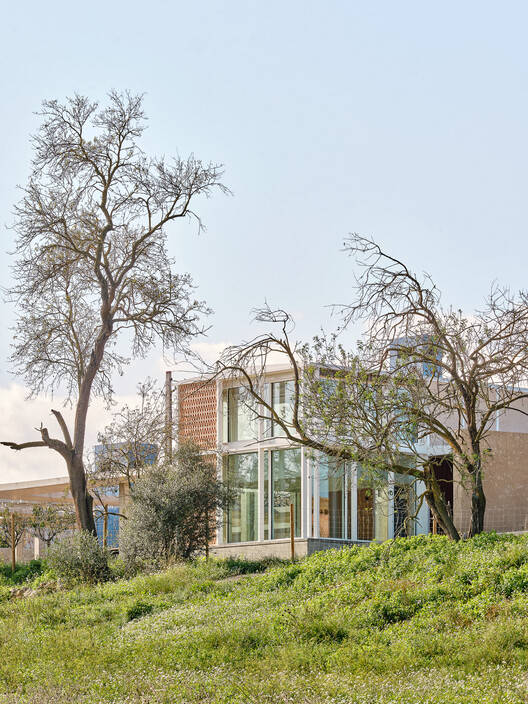 亭子被设计成轻便、几乎可移动的结构,每个亭子都对应于生活的一个特定方面:一个主要结构,包括厨房、客厅、浴室和卧室;另一间有儿童房和洗衣房;第三个用作客房和车间。所有这些都是用与气候和环境相协调的材料建造的:陶瓷格子、木镶板、金属结构和大型玻璃窗。