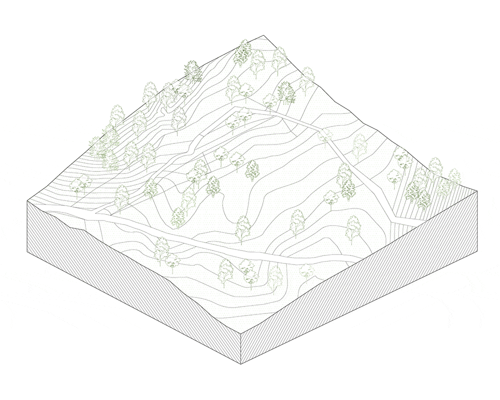 The overall architecture lacks a clear central axis, and the irregular layout continues the spontaneous growth characteristics of the village. Inheriting the original style of the mountain village, the 10 guest room units have four different elevations depending on the height difference of the site.