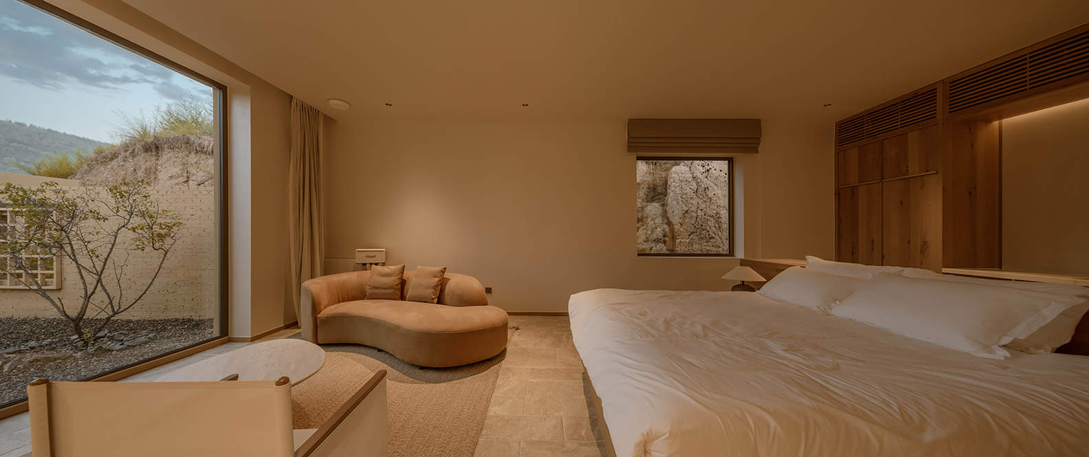 与环境的和谐共生:KALHA酒店的设计精髓在于其与环境的完美融合。设计师没有采用突兀的建筑风格,而是顺应地形,利用蜿蜒的墙体围合出连续的空间系统,使酒店仿佛从土地中生长出来。这种设计手法避免了传统酒店的封闭感,而是创造了一种开放、自由的氛围。客房单元的布局也打破了常规,随场地高差而变化,呈现出一种自由随机的形态,与村落的自发生长特征相呼应。这种设计理念不仅体现了对自然环境的尊重,也为住客提供了独特的空间体验,让他们感受到人与自然的和谐共生。