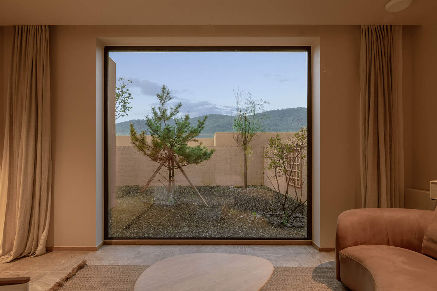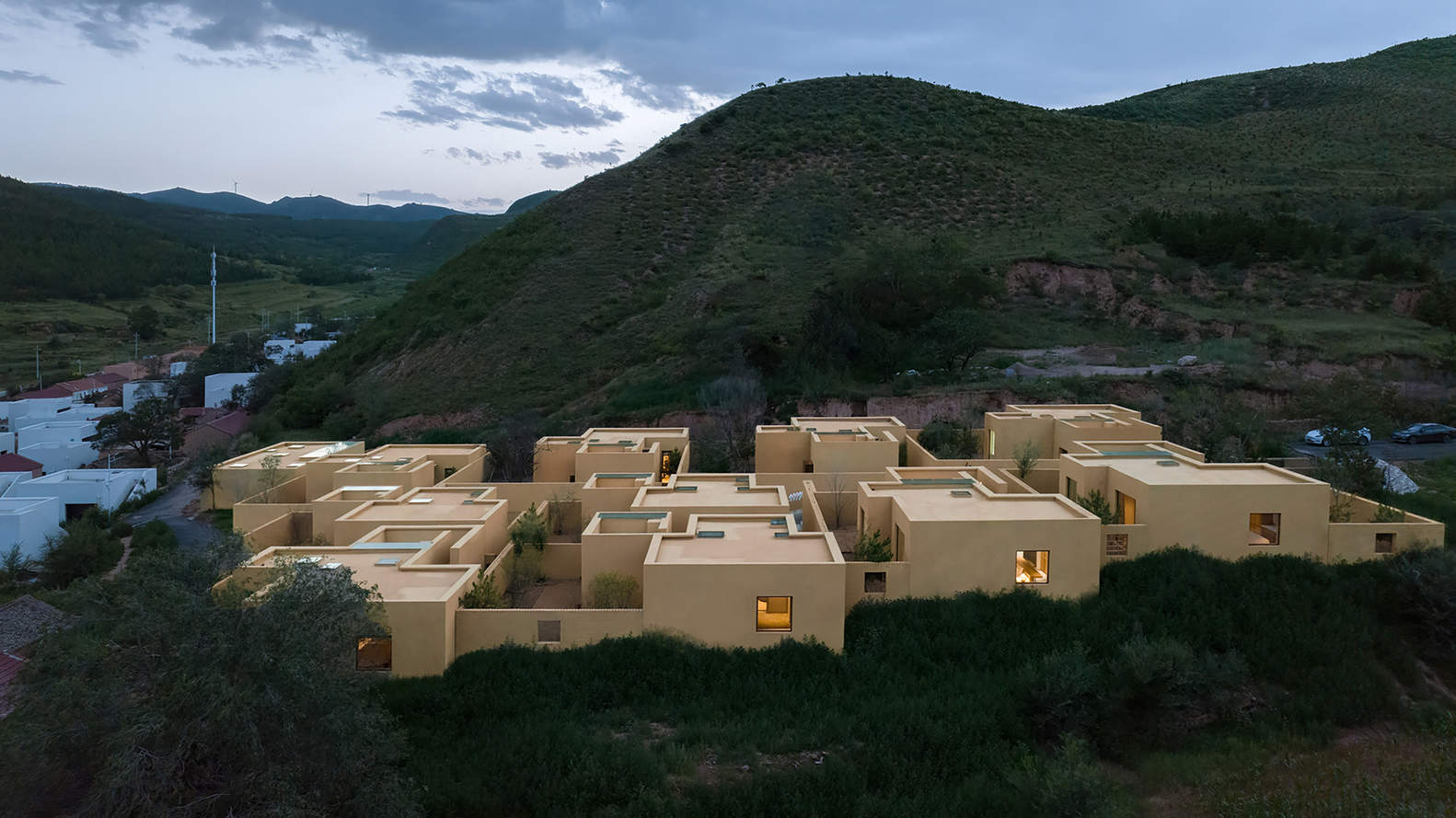 Unlike the scattered independent residences in the village, KALHA Hotel is a continuous spatial system enclosed by walls. The hotel rises gradually from south to north along the terrain and crawls horizontally on the slope north of the village. The view from the east and south directions is wide, with unobstructed views of nearby villages and distant mountains.