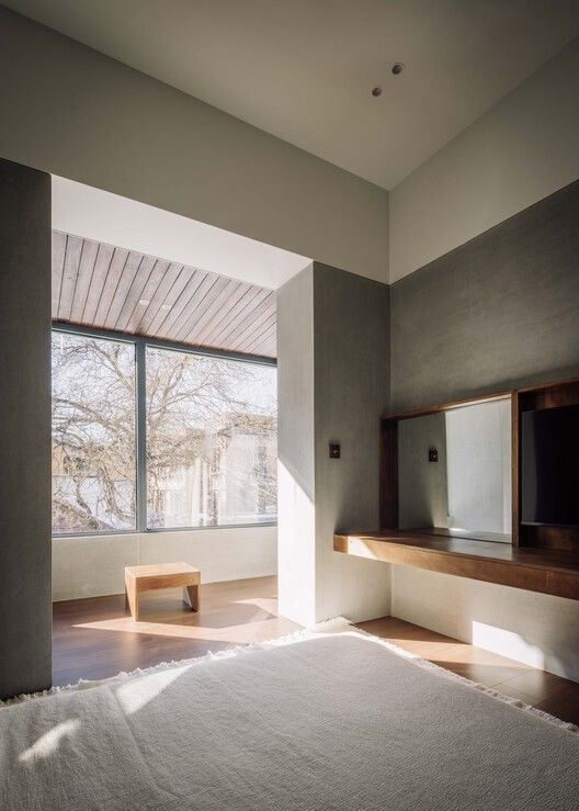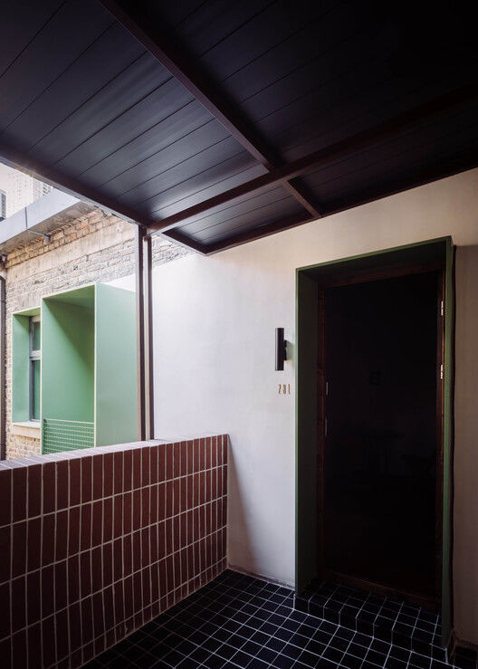 新旧材料的对话与历史文脉的延续: 该项目最令人印象深刻的特质在于其对历史的尊重和对新旧材料的巧妙运用。设计团队没有简单地进行“翻新”,而是通过“拼凑匠”的方式,最大程度地保留了原有建筑的砖石结构和木构屋顶,展现了早期殖民风格的独特魅力。新旧材料的对比,比如新旧砖的巧妙搭配,以及墨绿色铝板窗套的运用,都在默默地诉说着历史的变迁,并赋予建筑以现代感。二层露台的设计,保留了原屋顶的木构形式,更是在新与旧之间架起了一座桥梁,创造出与院落互动的功能,实现了历史文脉的完美延续。