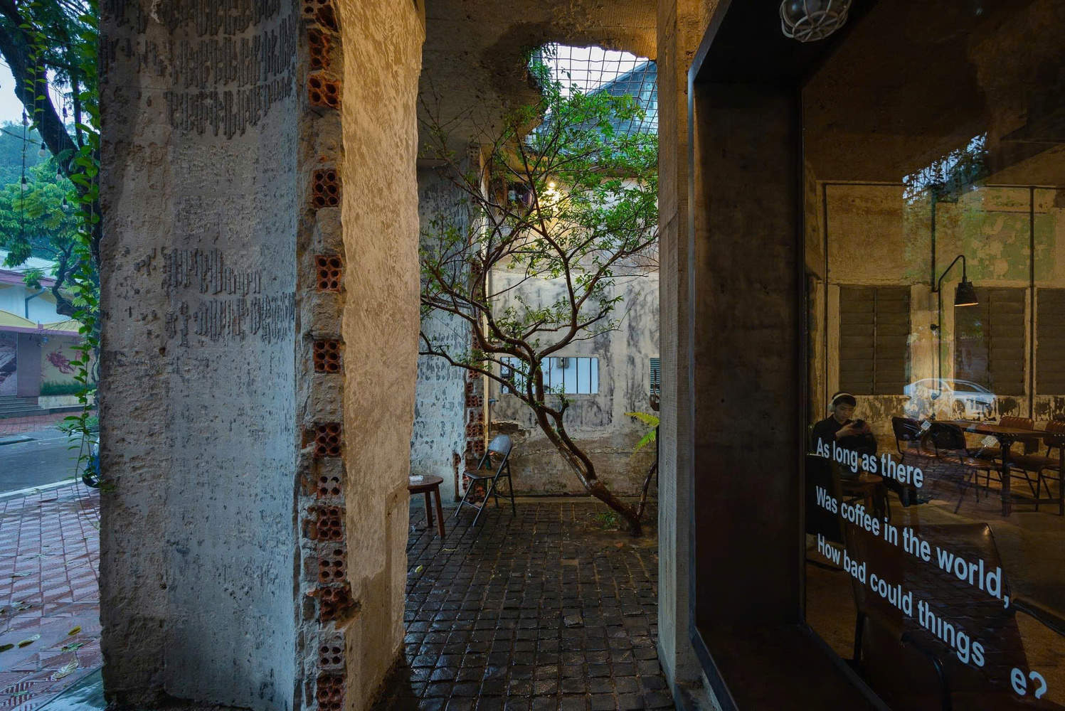 The most challenging task for architects and construction teams is to create an atmosphere of 'old times', as the initial design concept was' an abandoned factory'. Therefore, the iron roof is made of recycled materials, the steel structure is artificially rusted with additives, the concrete ceiling retains the original state of the old house, and the wooden components come from recycled materials from other old buildings. After six months of design and renovation, we have presented a 'coffee shop in an abandoned factory'.