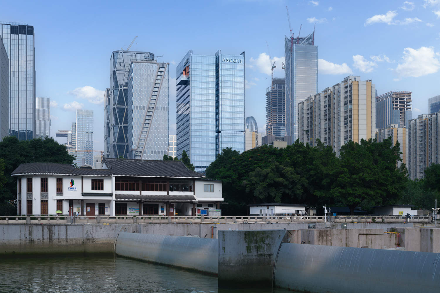 基地位于琶洲西区,这一广州近年重点打造的城市核心板块。项目限高仅 100m,计容面积约 3 万方。这样的高度和体量,似乎很难避免成为琶西 200m 甚至 300m 高楼群的背景板。