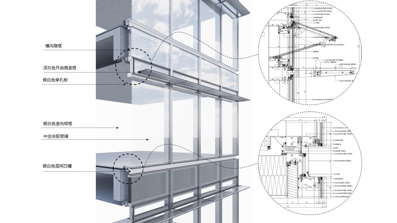 The overall cost control of the building is relatively strict, and the standard section of the tower is a key control area. After the epidemic, the demand for natural ventilation in buildings has been increasing day by day. The design team chose to hang external windows to meet 4% of the opening area while avoiding obstructing the view of residents. Set a 600mm perforated decorative strip at the bottom of the fan to block the uncontrollable facade effect after random opening.