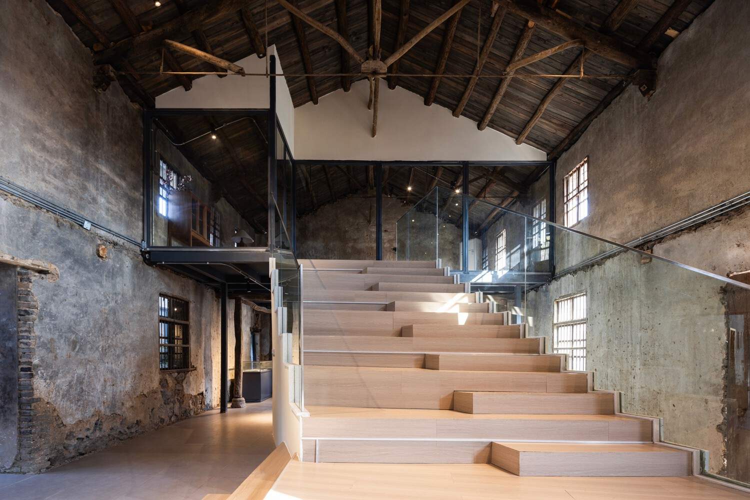 轻介入——最小干预实现弹性生长。艺术餐厅以钢结构跨接坍塌石墙,保留墙体原生植物;博物馆内部嵌入阳光板围合的钢结构体量,与历史木桁架形成时空对话。