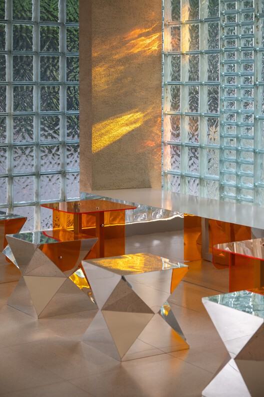 From the architect. THE FACETS is a renovation and expansion project for a caf é located on the site of a well-known gemstone store in San Kamphaeng, Chiang Mai, Thailand. The design revolves around interpreting the diversity of gemstones through architectural language, aiming to create a unique, captivating, and sensory rich space. The design inspiration comes from the beauty of gemstones such as diamonds, opals, amethysts, garnets, emeralds, aquamarine, sapphires, and citrines, transforming their form, color, and reflective characteristics into architectural forms while cleverly incorporating local cultural features.